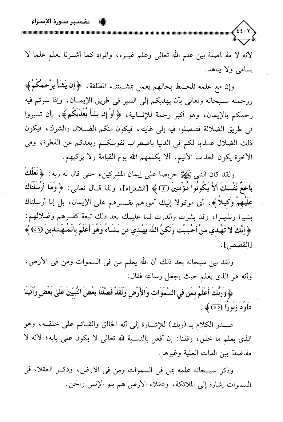 (وَرَبُّكَ أَعْلَمُ بِمَنْ فِي السَّمَاوَاتِ وَالْأَرْضِ وَلَقَدْ فَضَّلْنَا بَعْضَ النَّبِيِّينَ عَلَى بَعْضٍ وَآتَيْنَا دَاوُودَ زَبُورًا (55)