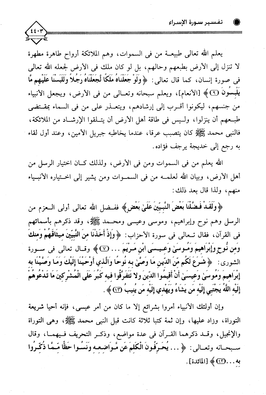 (وَلَقَدْ فَضَّلْنَا بَعْضَ النَّبِيِّينَ عَلَى بَعْضٍ) ففضل اللَّه تعالى أولي العزم من الرسل وهم نوح وإبراهيم، وموسى وعيسى ومحمد - صلى الله عليهم وسلم -، وقد ذكرهم بأسمائهم في القرآن، فقال تعالى في سورة الأحزاب: (وَإِذْ أَخَذْنَا مِنَ النَّبِيِّينَ مِيثَاقَهُمْ وَمِنْكَ وَمِنْ نُوحٍ وَإِبْرَاهِيمَ وَمُوسَى وَعِيسَى ابْنِ مَرْيَمَ. . .) وقال تعالى في سورة الشورى: (شَرَعَ لَكُمْ مِنَ الدِّينِ مَا وَصَّى بِهِ نُوحًا وَالَّذِي أَوْحَيْنَا إِلَيْكَ وَمَا وَصَّيْنَا بِهِ إِبْرَاهِيمَ وَمُوسَى وَعِيسَى أَنْ أَقِيمُوا الدِّينَ وَلَا تَتَفَرَّقُوا فِيهِ كَبُرَ عَلَى الْمُشْرِكِينَ مَا تَدْعُوهُمْ إِلَيْهِ اللَّهُ يَجْتَبِي إِلَيْهِ مَنْ يَشَاءُ وَيَهْدِي إِلَيْهِ مَنْ يُنِيبُ (13).