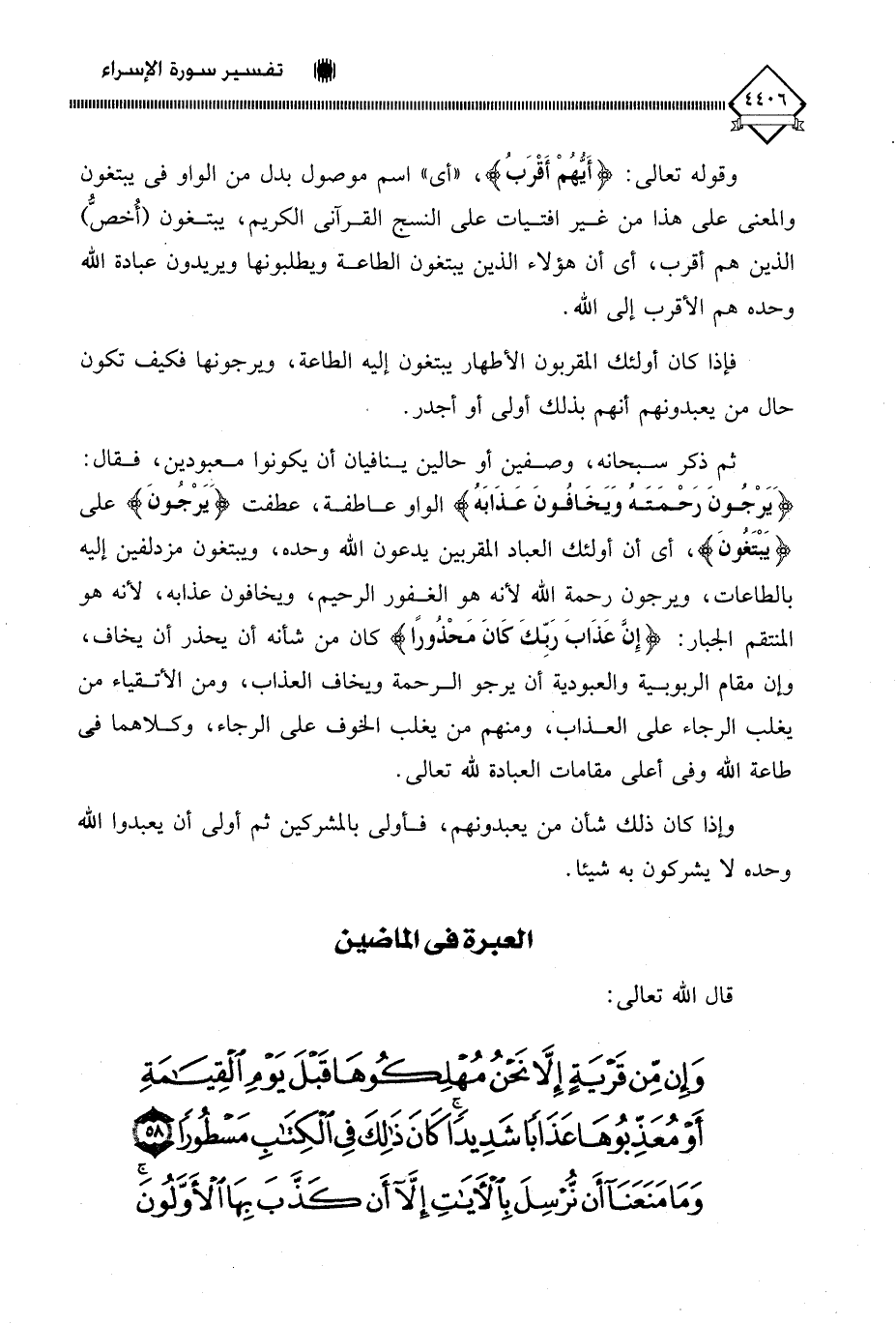 (وَإِنْ مِنْ قَرْيَةٍ إِلَّا نَحْنُ مُهْلِكُوهَا قَبْلَ يَوْمِ الْقِيَامَةِ أَوْ مُعَذِّبُوهَا عَذَابًا شَدِيدًا كَانَ ذَلِكَ فِي الْكِتَابِ مَسْطُورًا (58) وَمَا مَنَعَنَا أَنْ نُرْسِلَ بِالْآيَاتِ إِلَّا أَنْ كَذَّبَ بِهَا الْأَوَّلُونَ