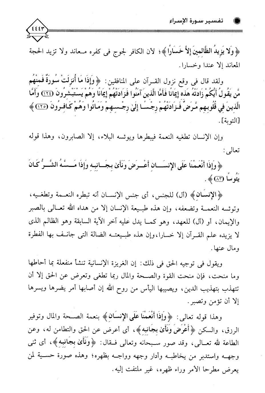 (وَإِذَا أَنْعَمْنَا عَلَى الْإِنْسَانِ أَعْرَضَ وَنَأَى بِجَانِبِهِ وَإِذَا مَسَّهُ الشَّرُّ كَانَ يَئُوسًا (83)