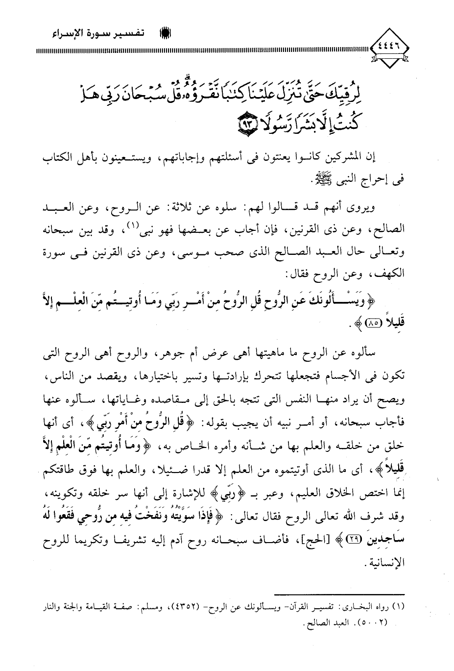(¬1) رواه البخاري: تفسير القرآن - ويسألونك عن الروح - (4352)، ومسلم: صفة القيامة والجنة والنار (5002). العبد الصالح.
