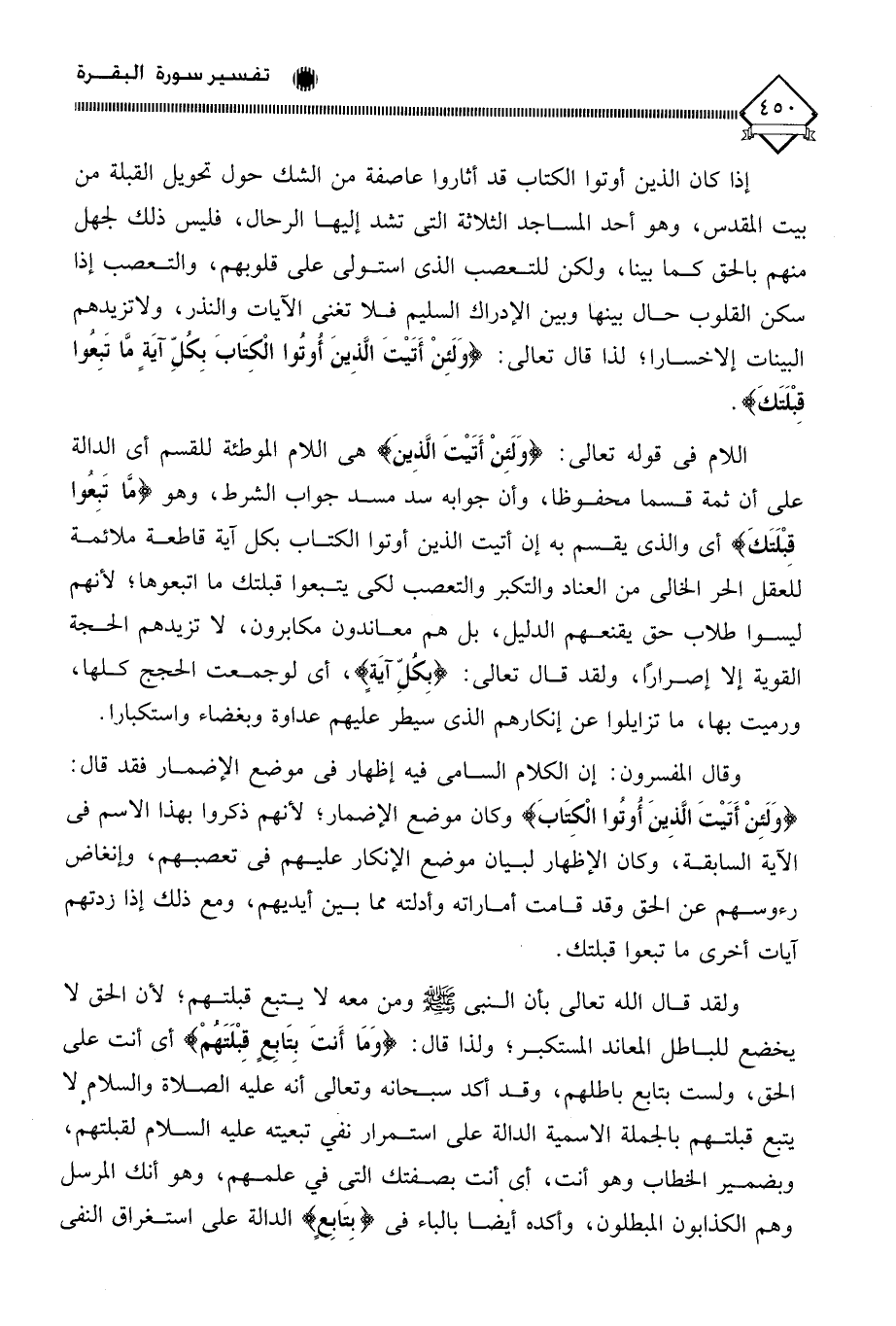 (وَلَئِنْ أَتَيْتَ الَّذِينَ أُوتُوا الْكِتَابَ بِكُلِّ آيَةٍ مَّا تَبِعوا قِبْلَتَكَ).