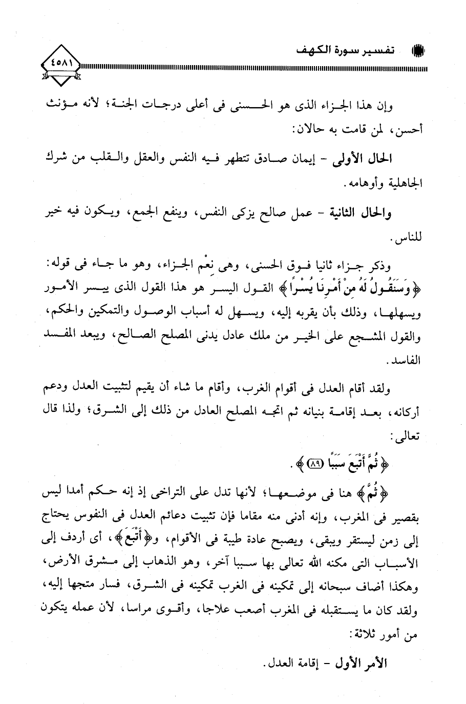 ولقد أقام العدل في أقوام الغرب، وأقام ما شاء أن يقيم لتثبيت العدل ودعم أركانه، بعد إقامة بنيانه ثم اتجه المصلح العادل من ذلك إلى الشرق؛ ولذا قال تعالى: