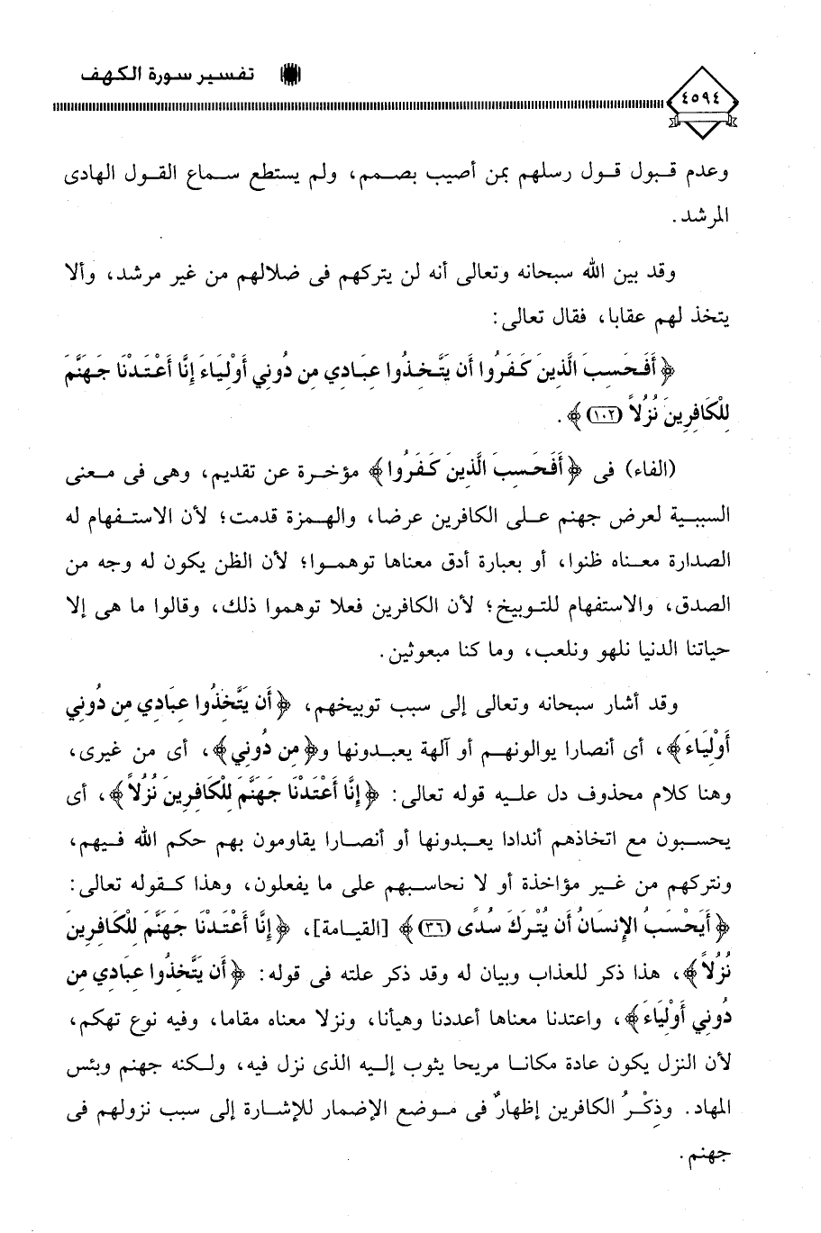 (أَفَحَسِبَ الَّذِينَ كَفَرُوا أَنْ يَتَّخِذُوا عِبَادِي مِنْ دُونِي أَوْلِيَاءَ إِنَّا أَعْتَدْنَا جَهَنَّمَ لِلْكَافِرِينَ نُزُلًا (102)