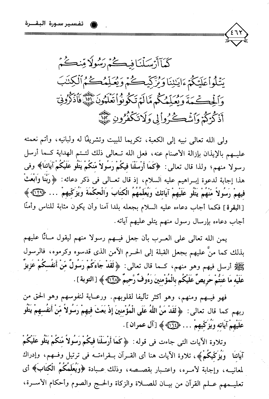 (كَمَا أَرْسَلْنَا فِيكُمْ رَسُولًا مِنْكُمْ يَتْلُو عَلَيْكُمْ آيَاتِنَا وَيُزَكِّيكُمْ وَيُعَلِّمُكُمُ الْكِتَابَ وَالْحِكْمَةَ وَيُعَلِّمُكُمْ مَا لَمْ تَكُونُوا تَعْلَمُونَ (151) فَاذْكُرُونِي أَذْكُرْكُمْ وَاشْكُرُوا لِي وَلَا تَكْفُرُونِ (152)
