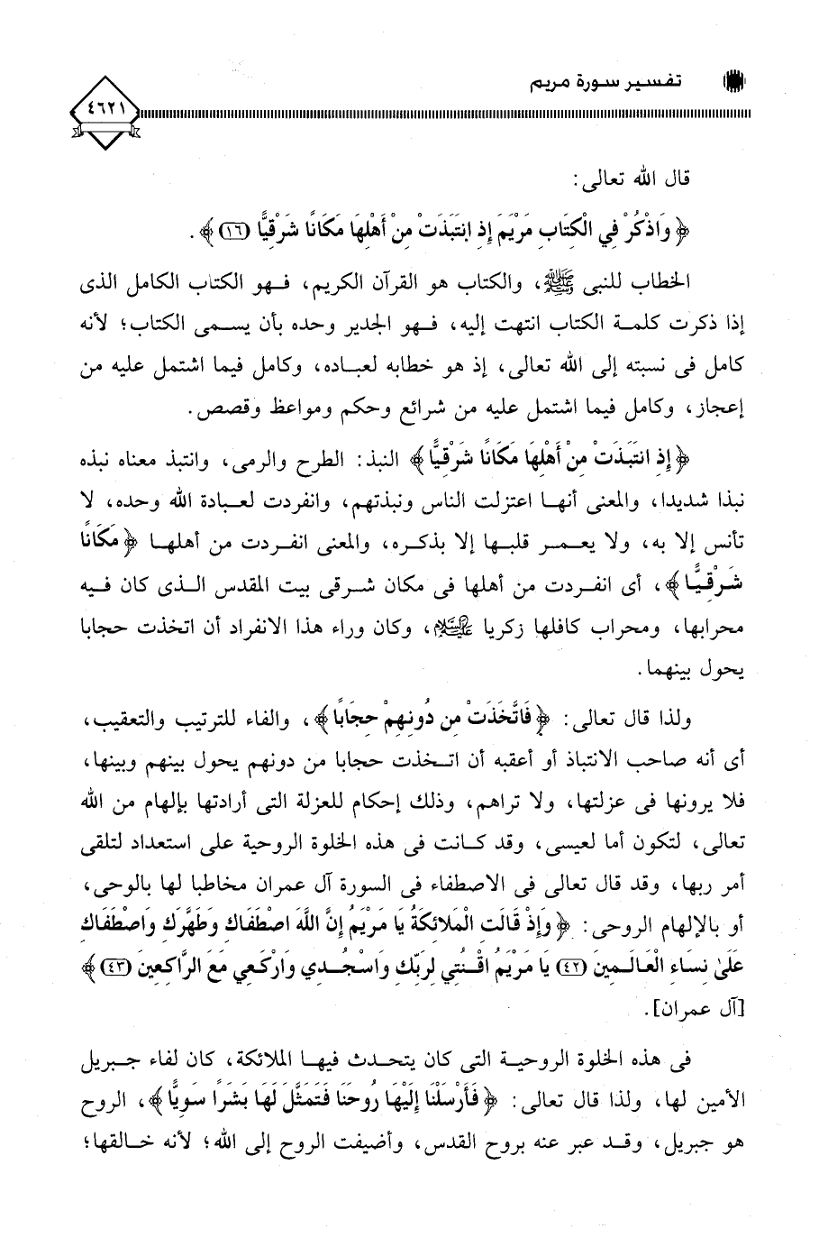 (وَاذْكُرْ فِي الْكِتَابِ مَرْيَمَ إِذِ انْتَبَذَتْ مِنْ أَهْلِهَا مَكَانًا شَرْقِيًّا (16)