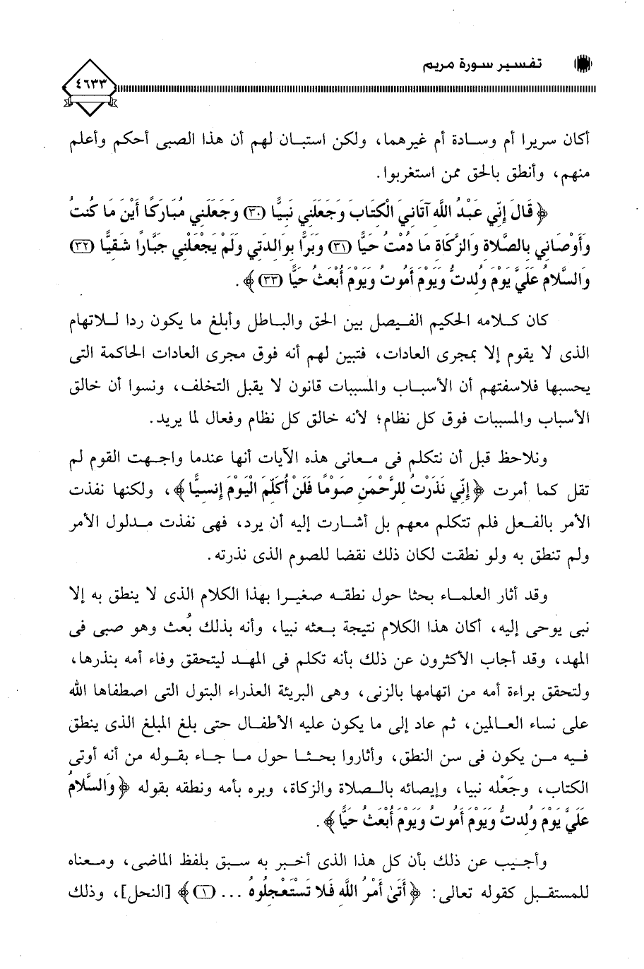 (قَالَ إِنِّي عَبْدُ اللَّهِ آتَانِيَ الْكِتَابَ وَجَعَلَنِي نَبِيًّا (30) وَجَعَلَنِي مُبَارَكًا أَيْنَ مَا كُنْتُ وَأَوْصَانِي بِالصَّلَاةِ وَالزَّكَاةِ مَا دُمْتُ حَيًّا (31) وَبَرًّا بِوَالِدَتِي وَلَمْ يَجْعَلْنِي جَبَّارًا شَقِيًّا (32) وَالسَّلَامُ عَلَيَّ يَوْمَ وُلِدْتُ وَيَوْمَ أَمُوتُ وَيَوْمَ أُبْعَثُ حَيًّا (33)