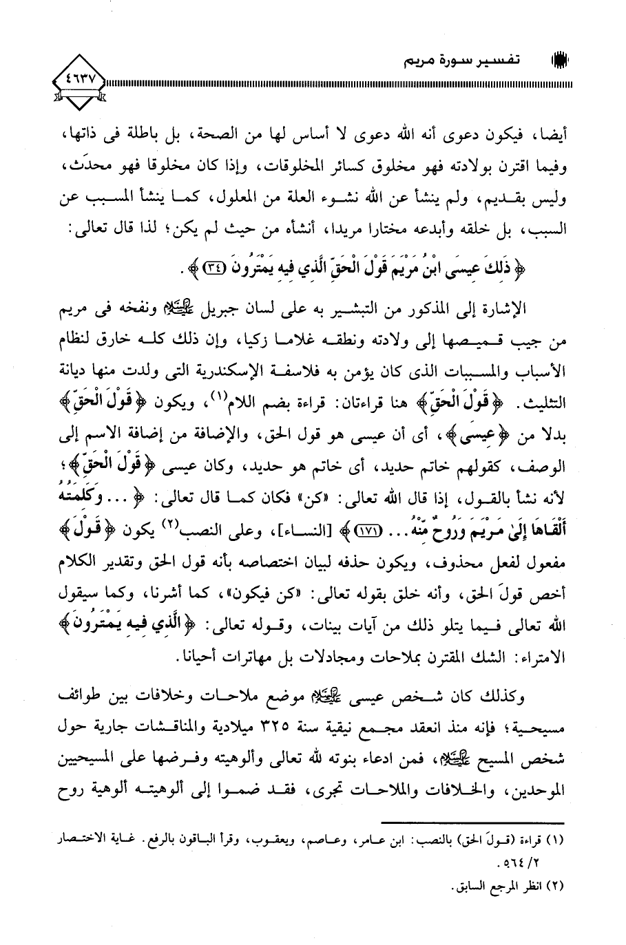 (¬1) قراءة (قولَ الحق) بالنصب: ابن عامر، وعاصم، ويعقوب، وقرأ الباقون بالرفع. غاية الاختصار.
