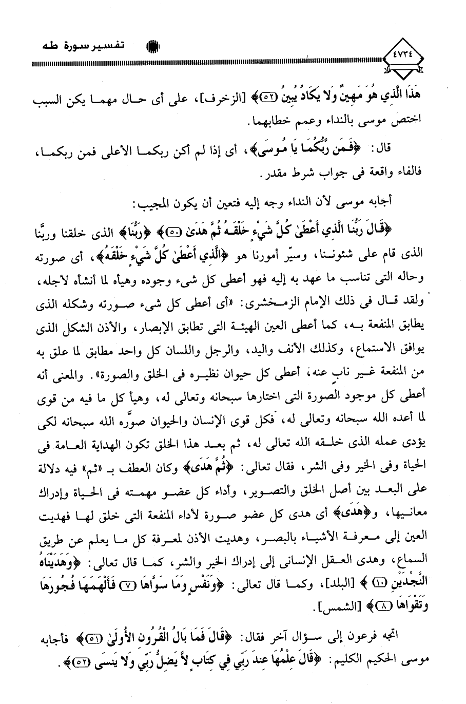 (قَالَ رَبُّنَا الَّذِي أَعْطَى كُلَّ شَيْءٍ خَلْقَهُ ثُمَّ هَدَى (50)
