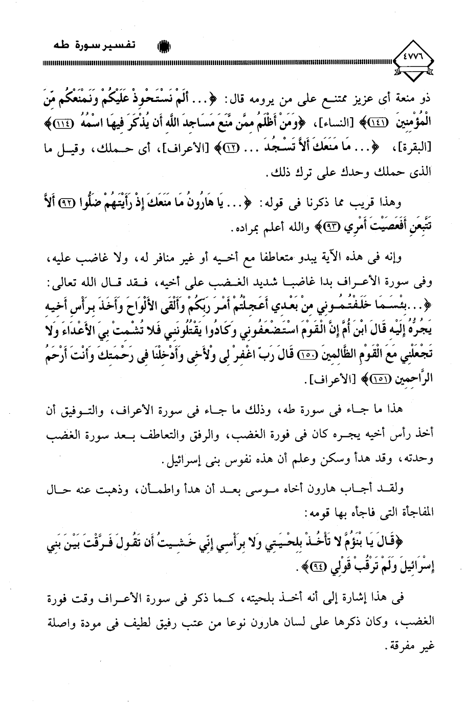 (. . . بِئْسَمَا خَلَفْتُمُونِي مِنْ بَعْدِي أَعَجِلْتُمْ أَمْرَ رَبِّكُمْ وَأَلْقَى الْأَلْوَاحَ وَأَخَذَ بِرَأْسِ أَخِيهِ يَجُرُّهُ إِلَيْهِ قَالَ ابْنَ أُمَّ إِنَّ الْقَوْمَ اسْتَضْعَفُونِي وَكَادُوا يَقْتُلُونَنِي فَلَا تُشْمِتْ بِيَ الْأَعْدَاءَ وَلَا تَجْعَلْنِي مَعَ الْقَوْمِ الظَّالِمِينَ (150) قَالَ رَبِّ اغْفِرْ لِي وَلِأَخِي وَأَدْخِلْنَا فِي رَحْمَتِكَ وَأَنْتَ أَرْحَمُ الرَّاحِمِينَ (151).