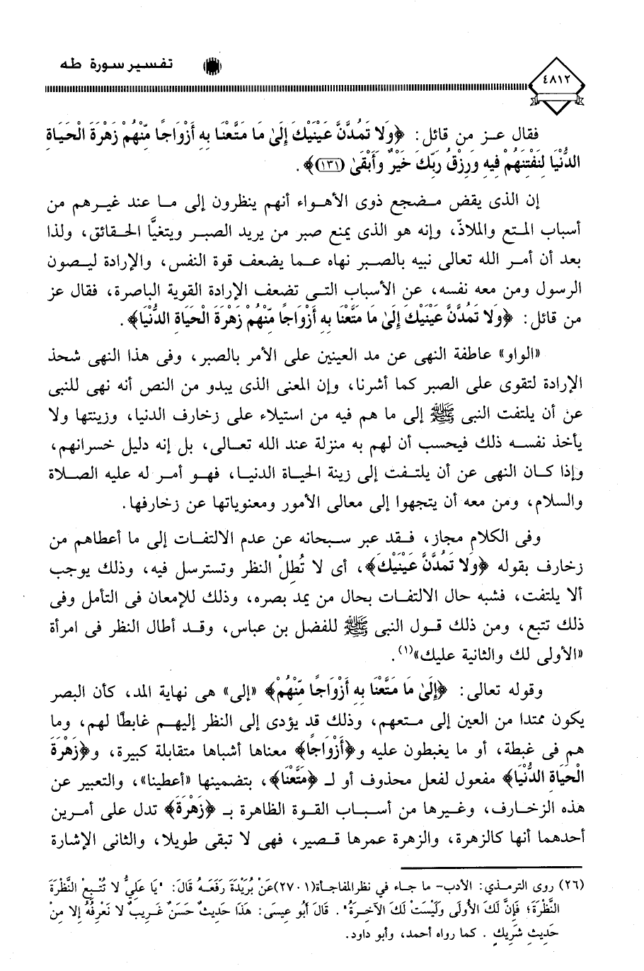 (وَلَا تَمُدَّنَّ عَيْنَيْكَ إِلَى مَا مَتَّعْنَا بِهِ أَزْوَاجًا مِنْهُمْ زَهْرَةَ الْحَيَاةِ الدُّنْيَا لِنَفْتِنَهُمْ فِيهِ وَرِزْقُ رَبِّكَ خَيْرٌ وَأَبْقَى (131)