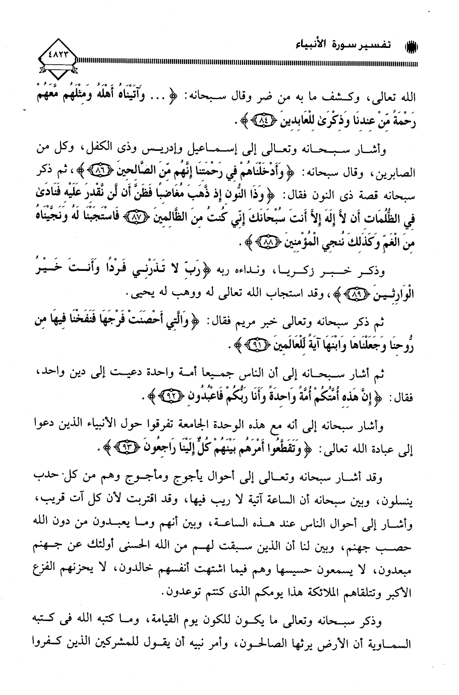 وأشار سبحانه وتعالى إلى إسماعيل وإدريس وذي الكفل، وكل من الصابرين، وقال سبحانه: (وَأَدْخَلْنَاهُمْ فِي رَحْمَتِنَا إِنَّهُمْ مِنَ الصَّالِحِينَ)، ثم ذكر سبحانه قصة ذي النون فقال: (وَذَا النُّونِ إِذْ ذَهَبَ مُغَاضِبًا فَظَنَّ أَنْ لَنْ نَقْدِرَ عَلَيْهِ فَنَادَى فِي الظُّلُمَاتِ أَنْ لَا إِلَهَ إِلَّا أَنْتَ سُبْحَانَكَ إِنِّي كُنْتُ مِنَ الظَّالِمِينَ (87) فَاسْتَجَبْنَا لَهُ وَنَجَّيْنَاهُ مِنَ الْغَمِّ وَكَذَلِكَ نُنْجِي الْمُؤْمِنِينَ (88).