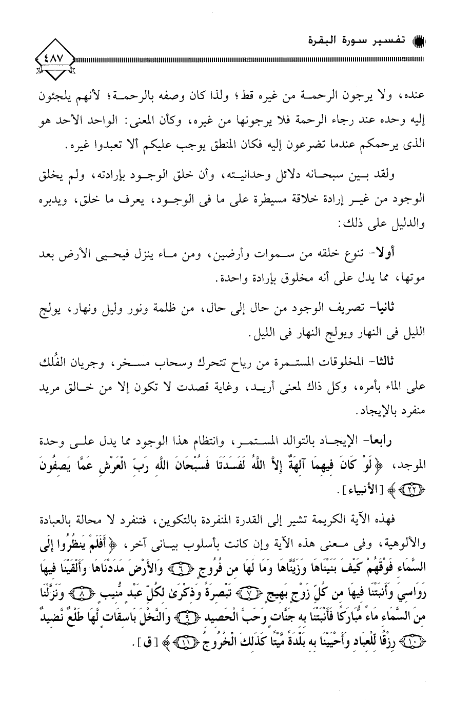 رابعا - الإيجاد بالتوالد المستمر، وانتظام هذا الوجود مما يدل على وحدة الموجد، (لَوْ كَانَ فِيهِمَا آلِهَةٌ إِلَّا اللَّهُ لَفَسَدَتَا فَسُبْحَانَ اللَّهِ رَبِّ الْعَرْشِ عَمَّا يَصِفُونَ).