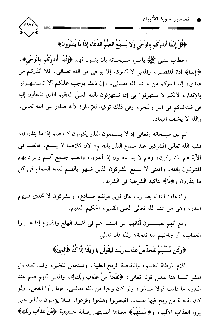 (قُلْ إِنَّمَا أُنْذِرُكُمْ بِالْوَحْيِ وَلَا يَسْمَعُ الصُّمُّ الدُّعَاءَ إِذَا مَا يُنْذَرُونَ (45)