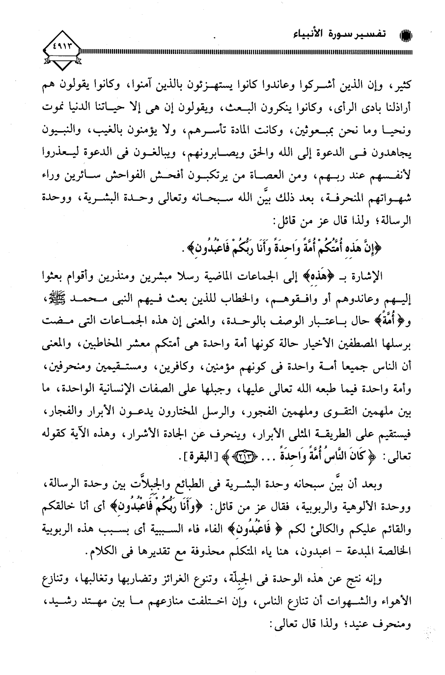 (إِنَّ هَذِهِ أُمَّتُكُمْ أُمَّةً وَاحِدَةً وَأَنَا رَبُّكُمْ فَاعْبُدُونِ (92)