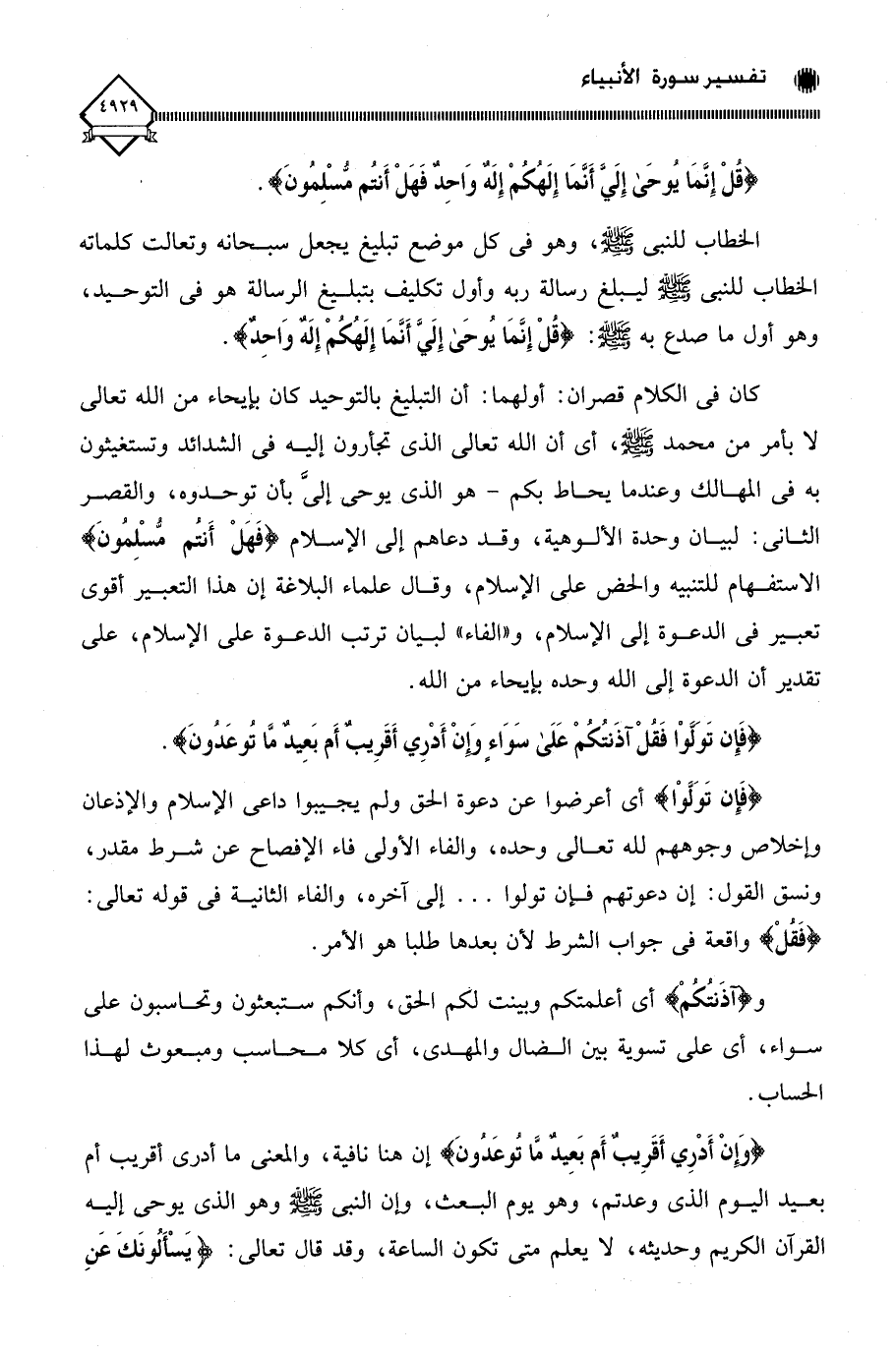 (قُلْ إِنَّمَا يُوحَى إِلَيَّ أَنَّمَا إِلَهُكُمْ إِلَهٌ وَاحِدٌ فَهَلْ أَنْتُمْ مُسْلِمُونَ (108)