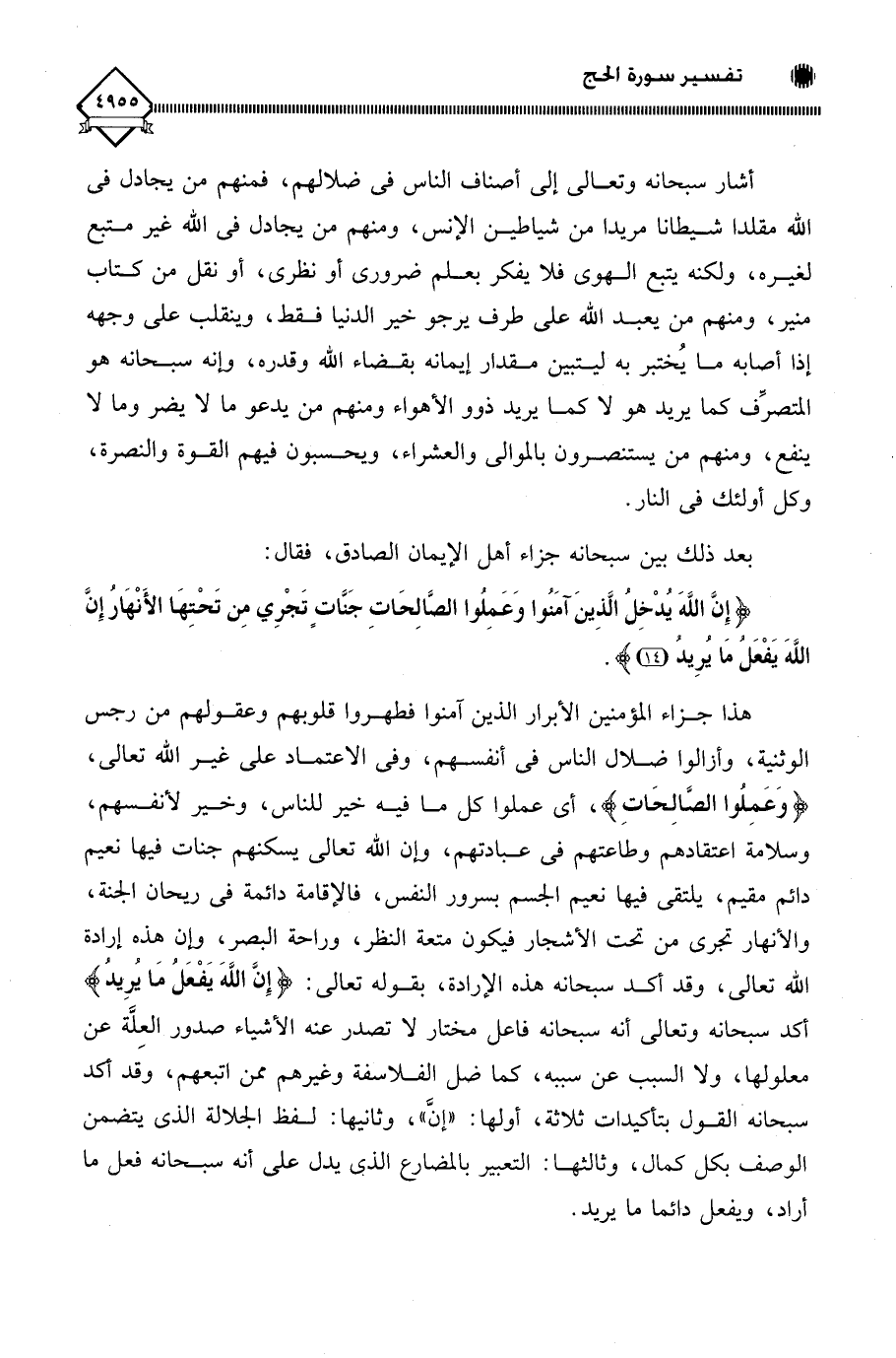 (إِنَّ اللَّهَ يُدْخِلُ الَّذِينَ آمَنُوا وَعَمِلُوا الصَّالِحَاتِ جَنَّاتٍ تَجْرِي مِنْ تَحْتِهَا الْأَنْهَارُ إِنَّ اللَّهَ يَفْعَلُ مَا يُرِيدُ (14).