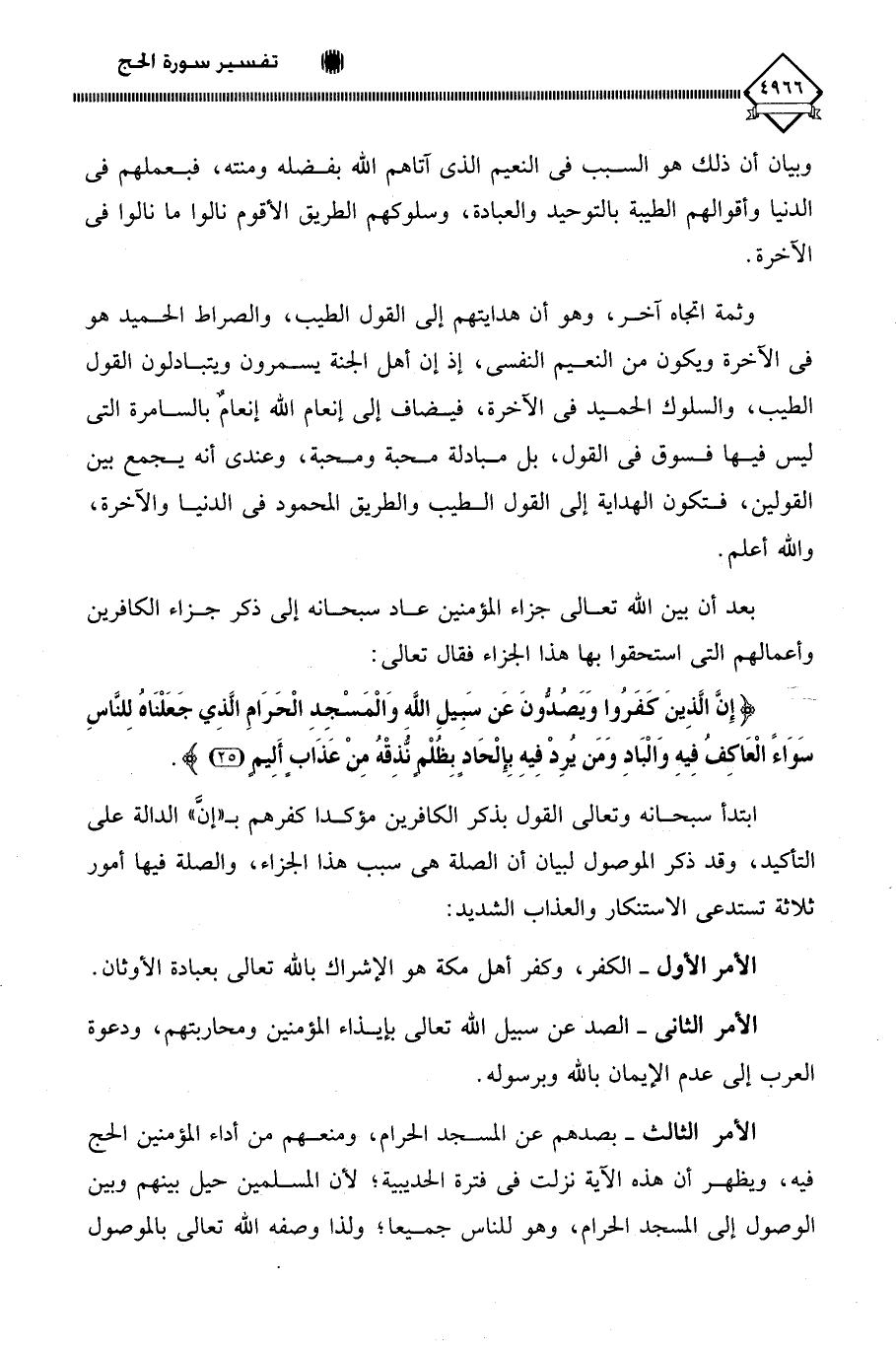 (إِنَّ الَّذِينَ كَفَرُوا وَيَصُدُّونَ عَنْ سَبِيلِ اللَّهِ وَالْمَسْجِدِ الْحَرَامِ الَّذِي جَعَلْنَاهُ لِلنَّاسِ سَوَاءً الْعَاكِفُ فِيهِ وَالْبَادِ وَمَنْ يُرِدْ فِيهِ بِإِلْحَادٍ بِظُلْمٍ نُذِقْهُ مِنْ عَذَابٍ أَلِيمٍ (25)