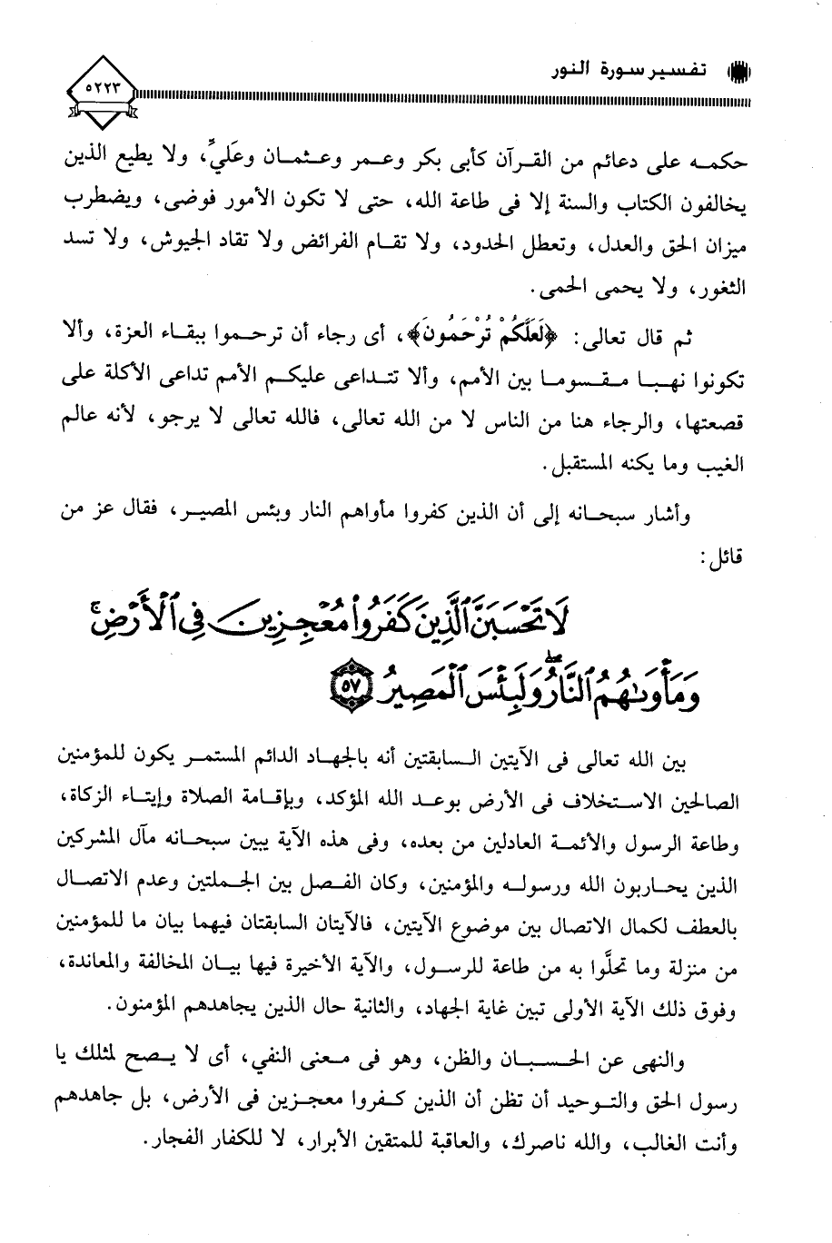 (لَا تَحْسَبَنَّ الَّذِينَ كَفَرُوا مُعْجِزِينَ فِي الْأَرْضِ وَمَأْوَاهُمُ النَّارُ وَلَبِئْسَ الْمَصِيرُ (57)