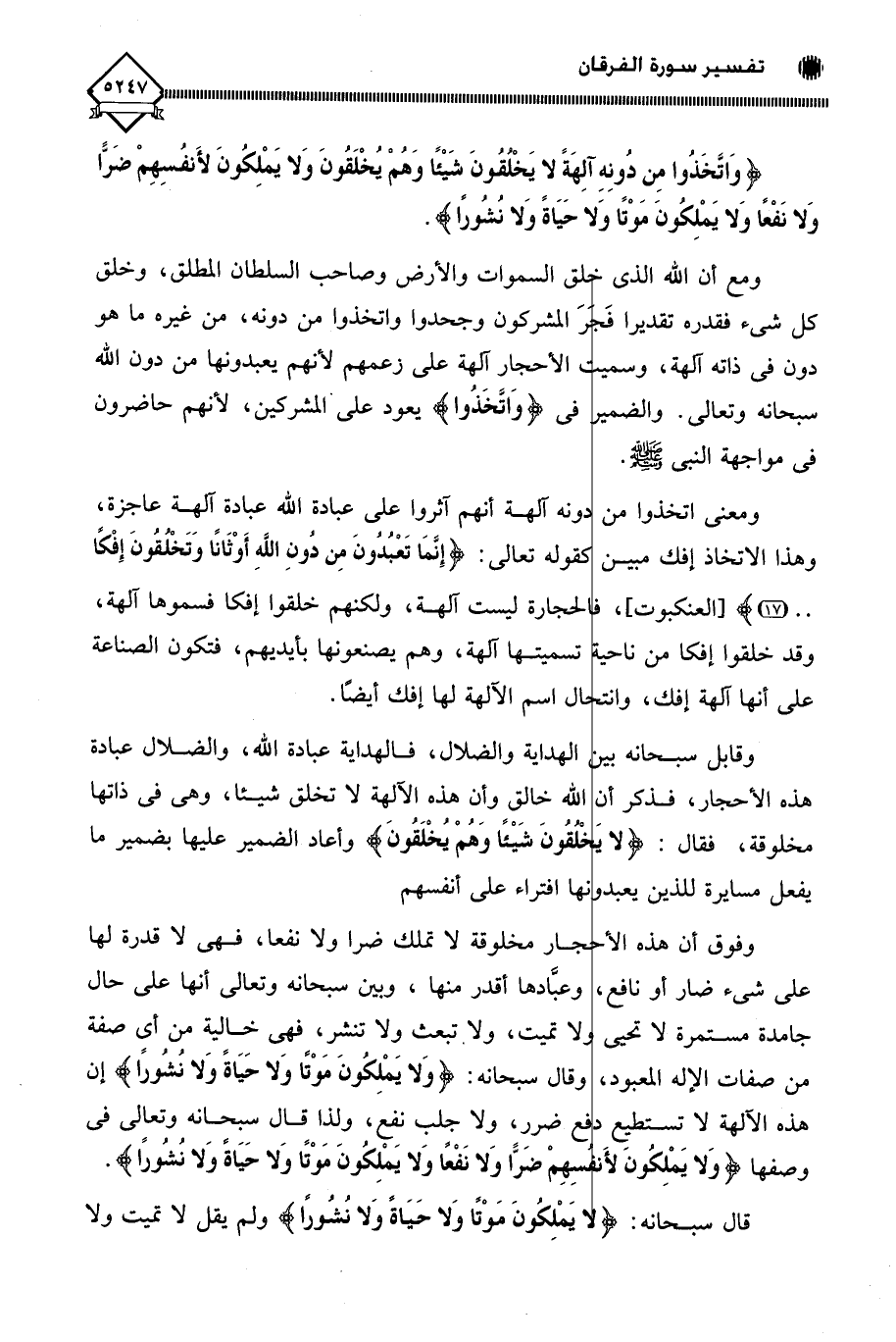 (وَاتَّخَذُوا مِنْ دُونِهِ آلِهَةً لَا يَخْلُقُونَ شَيْئًا وَهُمْ يُخْلَقُونَ وَلَا يَمْلِكُونَ لِأَنْفُسِهِمْ ضَرًّا وَلَا نَفْعًا وَلَا يَمْلِكُونَ مَوْتًا وَلَا حَيَاةً وَلَا نُشُورًا (3)