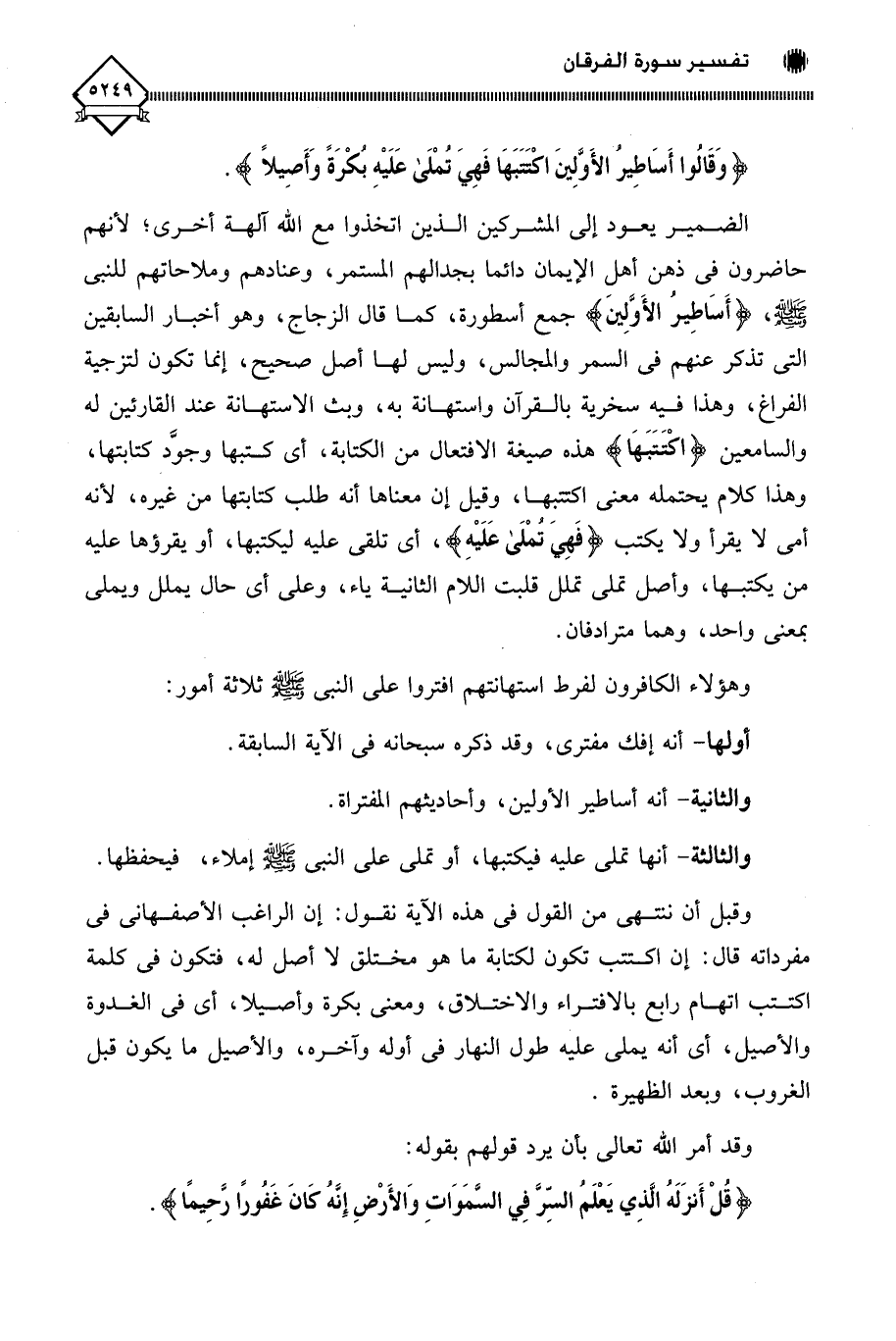 (وَقَالُوا أَسَاطِيرُ الْأَوَّلِينَ اكْتَتَبَهَا فَهِيَ تُمْلَى عَلَيْهِ بُكْرَةً وَأَصِيلًا (5)