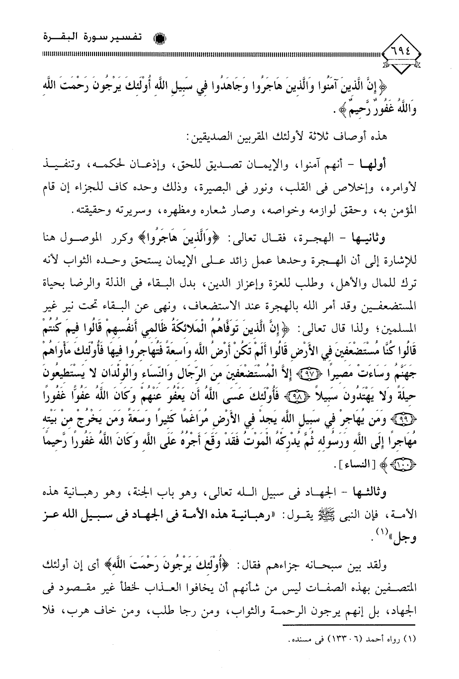 (إِنَّ الَّذِينَ آمَنُوا وَالَّذِينَ هَاجَرُوا وَجَاهَدُوا فِي سَبِيلِ اللَّهِ أُولَئِكَ يَرْجُونَ رَحْمَتَ اللَّهِ وَاللَّهُ غَفُورٌ رَحِيمٌ).