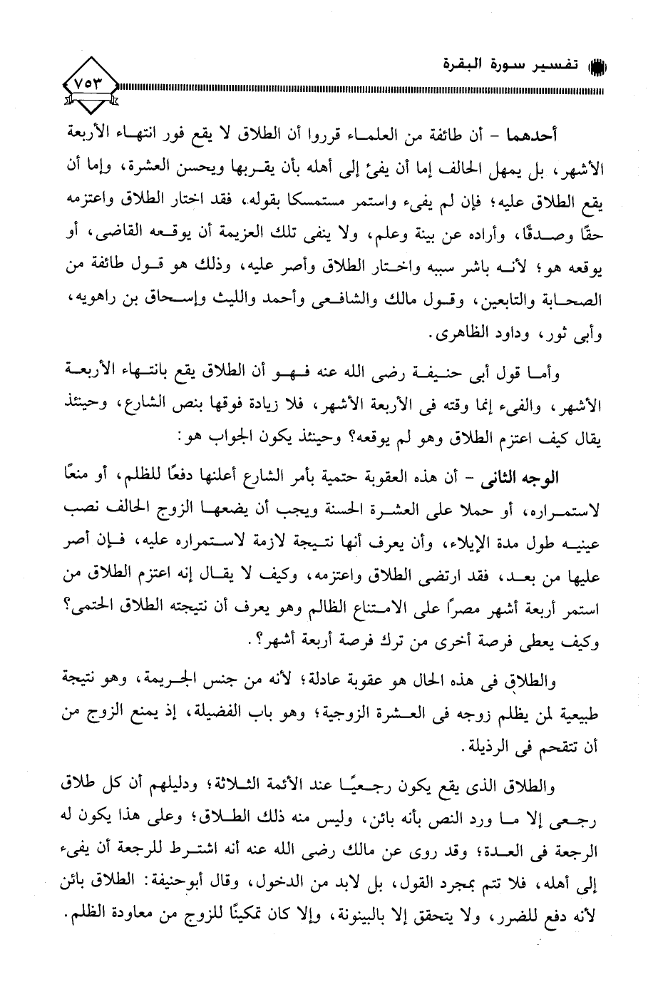 الوجه الثاني - أن هذه العقوبة حتمية بأمر الشارع أعلنها دفعًا للظلم، أو منعًا لاستمراره، أو حملا على العشرة الحسنة ويجب أن يضعها الزوج الحالف نصب عينيه طول مدة الإيلاء، وأن يعرف أنها نتيجة لازمة لاستمراره عليه، فإن أصر عليها من بعد، فقد ارتضى الطلاق واعتزمه، وكيف لَا يقال إنه اعتزم الطلاق من استمر أربعة أشهر مصرًا على الامتناع الظالم وهو يعرف أن نتيجته الطلاق الحتمي؛ وكيف يعطي فرصة أخرى من ترك فرصة أربعة أشهر؟.