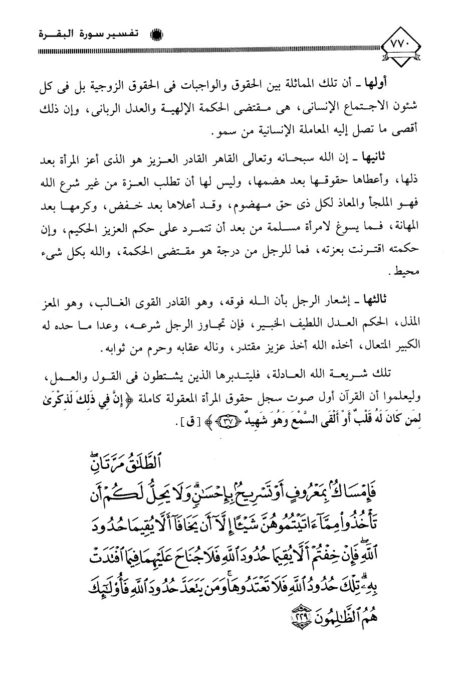 (الطَّلَاقُ مَرَّتَانِ فَإِمْسَاكٌ بِمَعْرُوفٍ أَوْ تَسْرِيحٌ بِإِحْسَانٍ وَلَا يَحِلُّ لَكُمْ أَنْ تَأْخُذُوا مِمَّا آتَيْتُمُوهُنَّ شَيْئًا إِلَّا أَنْ يَخَافَا أَلَّا يُقِيمَا حُدُودَ اللَّهِ فَإِنْ خِفْتُمْ أَلَّا يُقِيمَا حُدُودَ اللَّهِ فَلَا جُنَاحَ عَلَيْهِمَا فِيمَا افْتَدَتْ بِهِ تِلْكَ حُدُودُ اللَّهِ فَلَا تَعْتَدُوهَا وَمَنْ يَتَعَدَّ حُدُودَ اللَّهِ فَأُولَئِكَ هُمُ الظَّالِمُونَ (229)