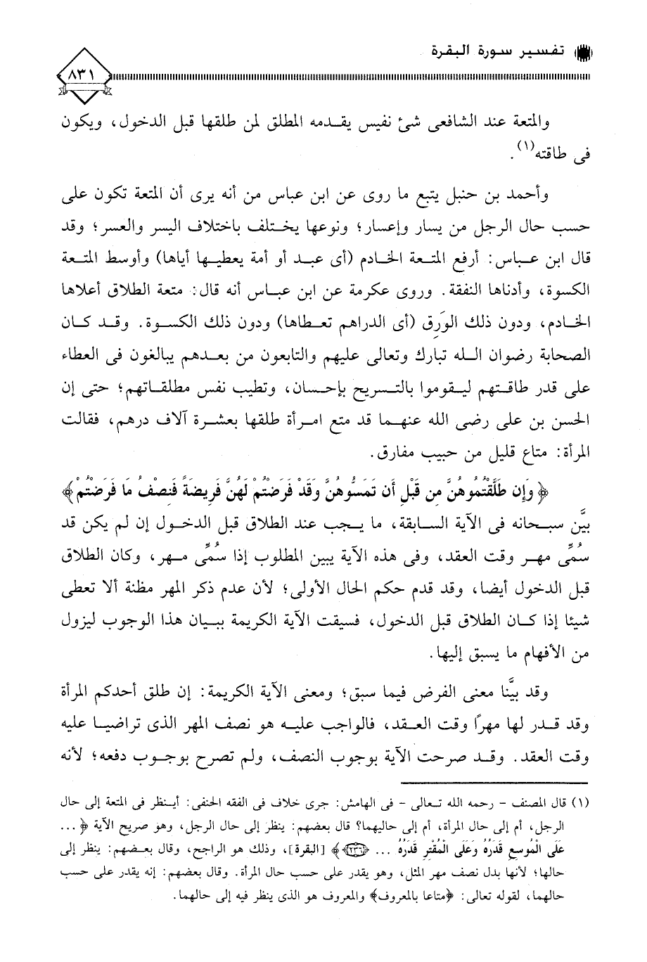 (وَإِنْ طَلَّقْتُمُوهُنَّ مِنْ قَبْلِ أَنْ تَمَسُّوهُنَّ وَقَدْ فَرَضْتُمْ لَهُنَّ فَرِيضَةً فَنِصْفُ مَا فَرَضْتُمْ ... (237)