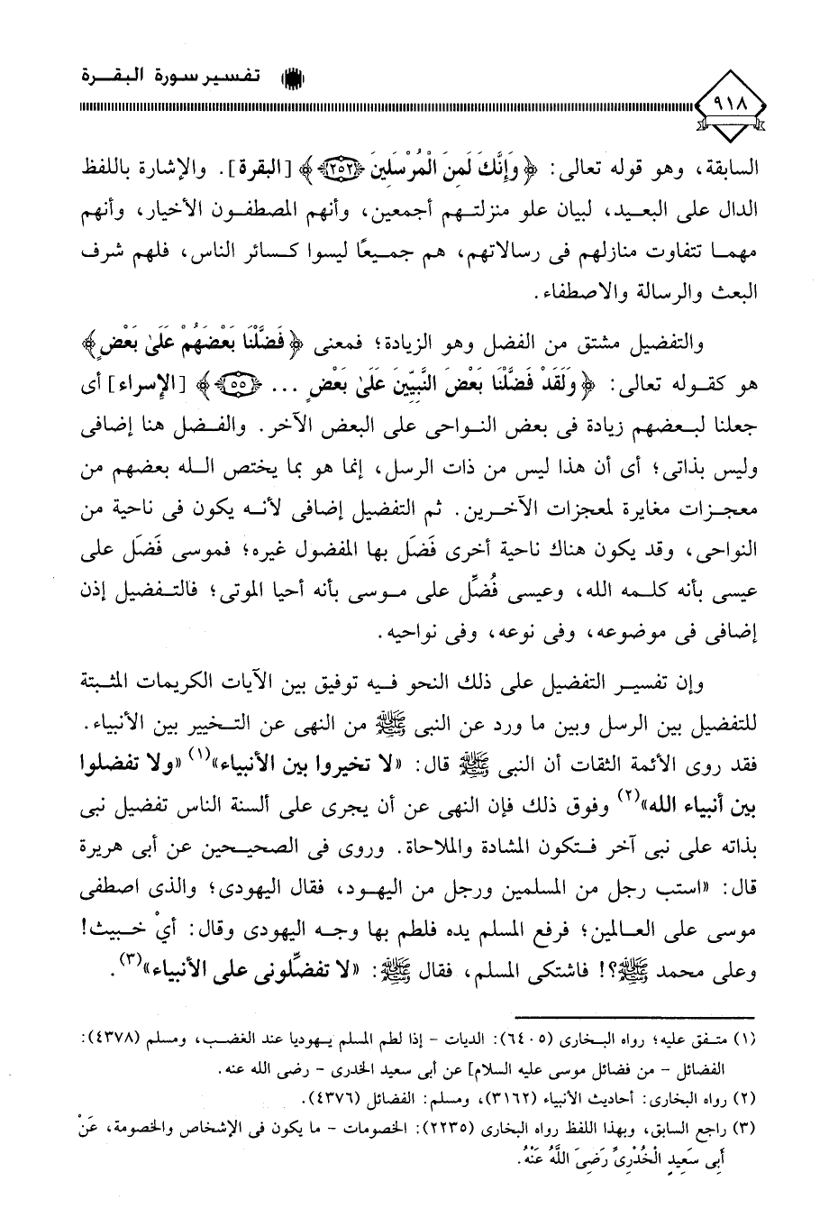 وإن تفسير التفضيل على ذلك النحو فيه توفيق بين الآيات الكريمات المثبتة للتفضيل بين الرسل وبين ما ورد عن النبي - صلى الله عليه وسلم - من النهي عن التخيير بين الأنبياء.