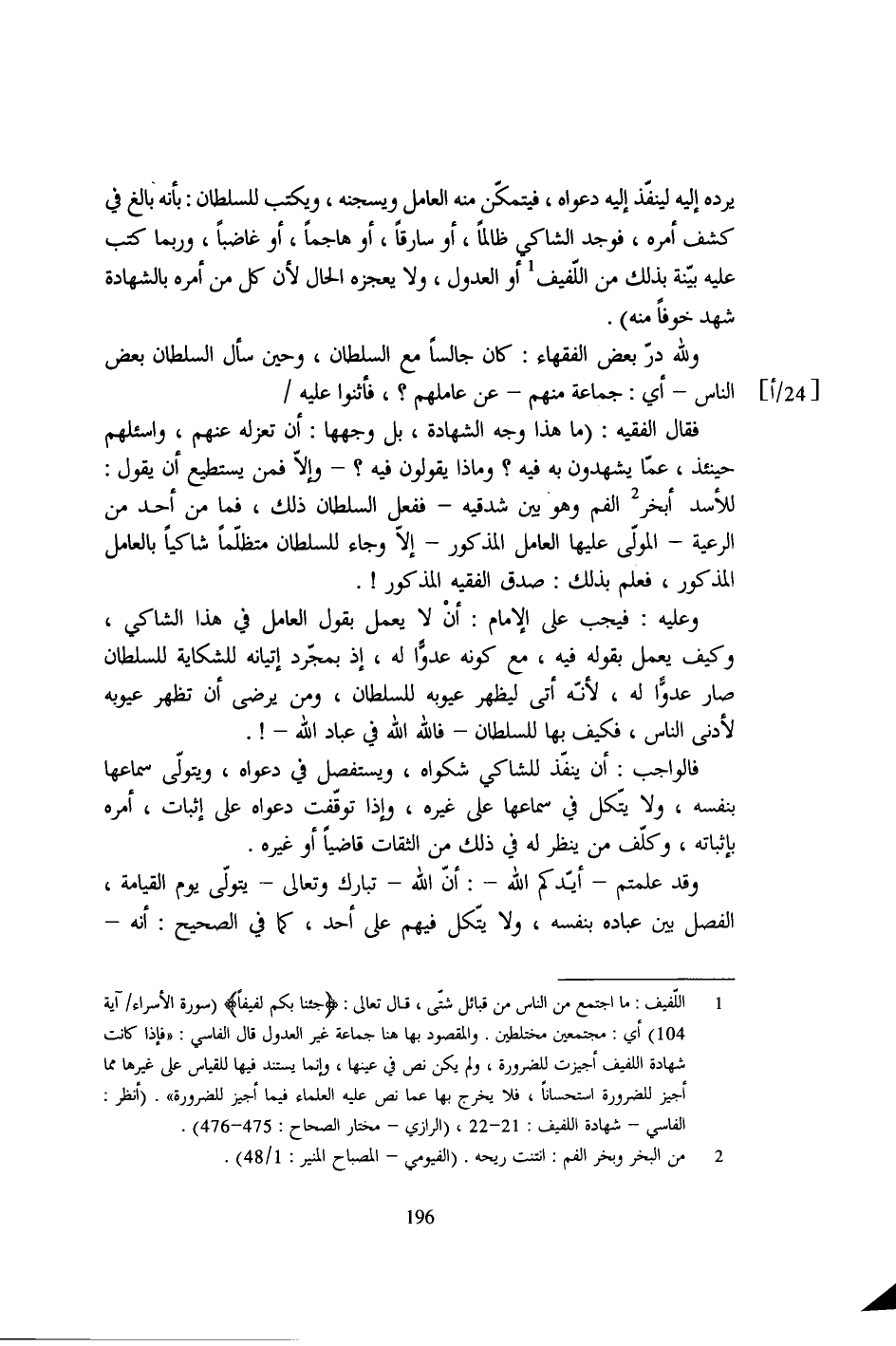 ولله درّ بعض الفقهاء: كان جالساً مع السلطان، وحين سأل السلطان بعض الناس- أي: جماعة منهم- عن عاملهم؟، فأثنوا عليه [24/أ]