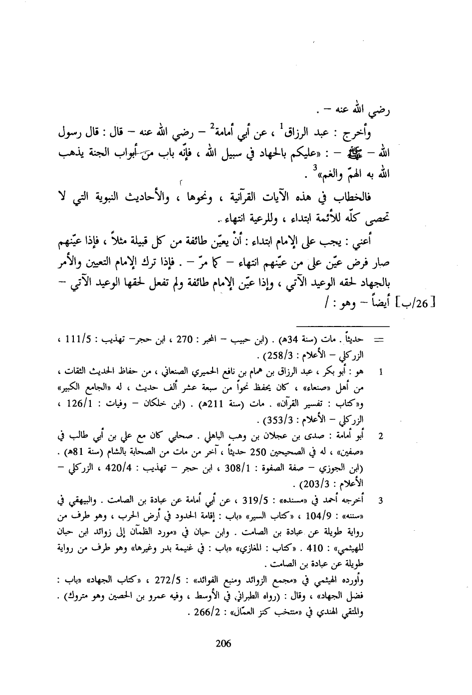 1 - هو: أبو بكر، عبد الرزاق بن همام بن نافع الحميري الصنعاني، من حفاظ الحديث الثقات، من أهل "صنعاء"، كان يحفظ نحواً من سبعة عشر ألف حديث، له "الجامع الكبير" و"كتاب: تفسير القرآن". مات (سنة 211هـ). (ابن خلكان- وفيات: 1/ 126، الزركلي- الأعلام: 3/ 353).