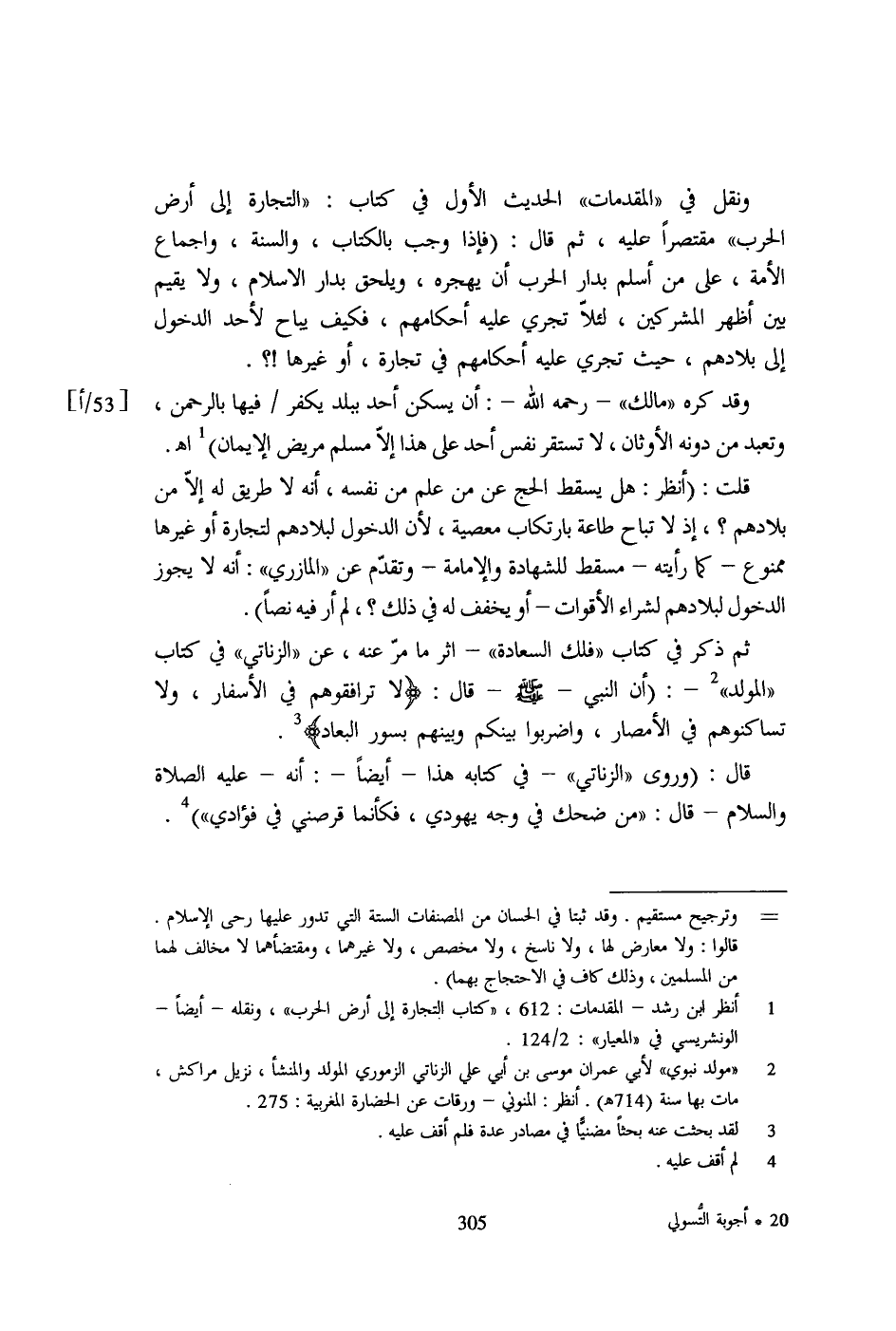 1 - أنظر ابن رشد- المقدمات: 612، "كتاب التجارة إلى أرض الحرب"، ونقله- أيضاً- الونشريسي في "المعيار": 2/ 124.