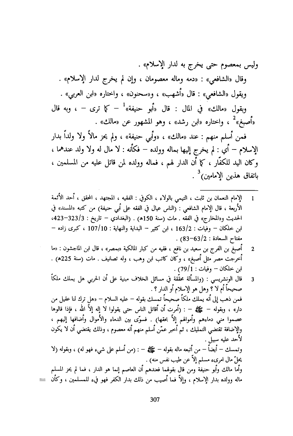 1 - الإمام النعمان بن ثابت، التيمي بالولاء، الكوفي: الفقيه، المجتهد، المحقق، أحد الأئمة الأربعة، قال الإمام الشافعي: (الناس عيال في الفقه على أبي حنيفة) من كتبه "المسند" في الحديث و"المخارج" في الفقه. مات (سنة 150هـ). (البغدادي- تاريخ: 3/ 323 - 423، ابن خلكان- وفيات: 2/ 163، ابن كثير- البداية والنهاية: 10/ 107، كبرى زاده- مفتاح السعادة: 2/ 63 - 83).