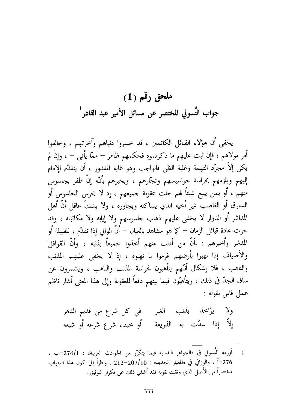 جواب التُّسولي المختصر عن مسائل الأمير عبد القادر 1