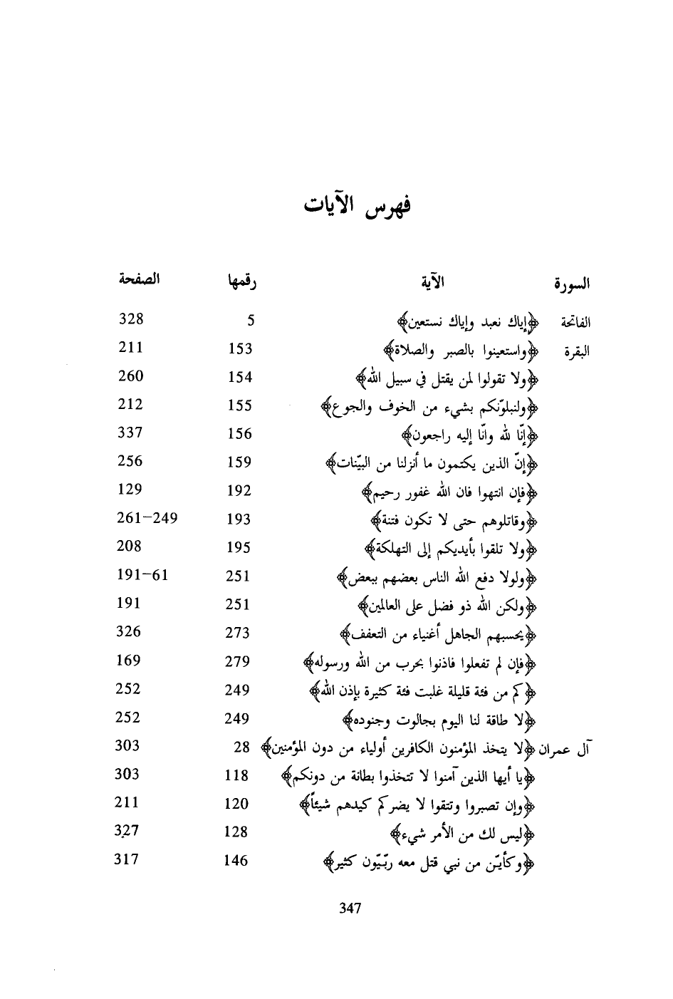 البقرة .......... {واستعينوا بالصبر والصلاة} .................................... 153 .......... 211