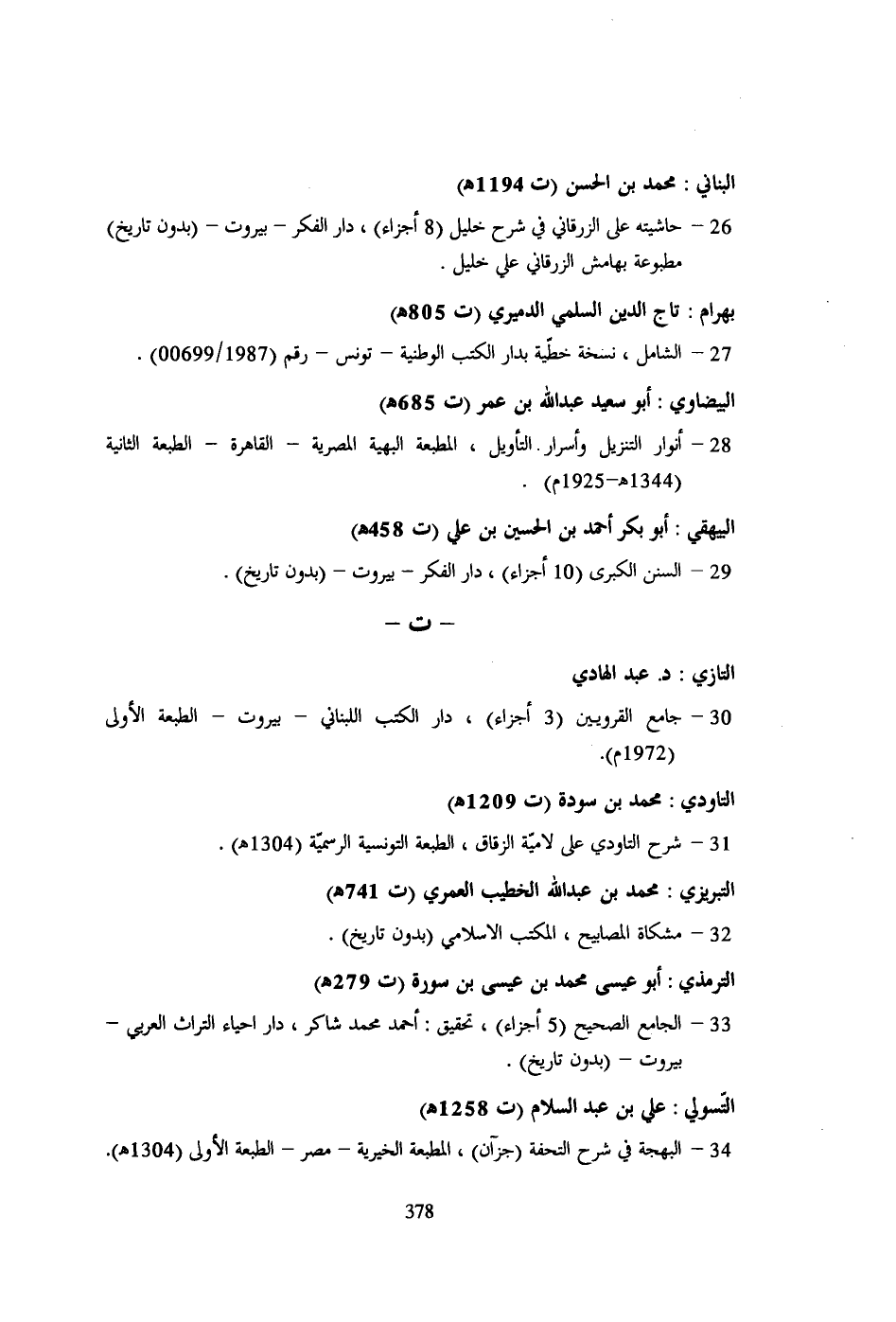 33 - الجامع الصحيح (5 أجزاء)، تحقيق: أحمد محمد شاكر، دار احياء التراث العربي- بيروت- (بدون تاريخ).
