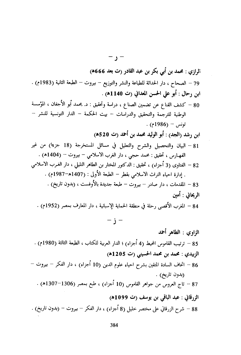 85 - ترتيب القاموس المحيط (4 أجزاء)؛ الدار العربية للكتاب، الطبعة الثالثة (1980م).