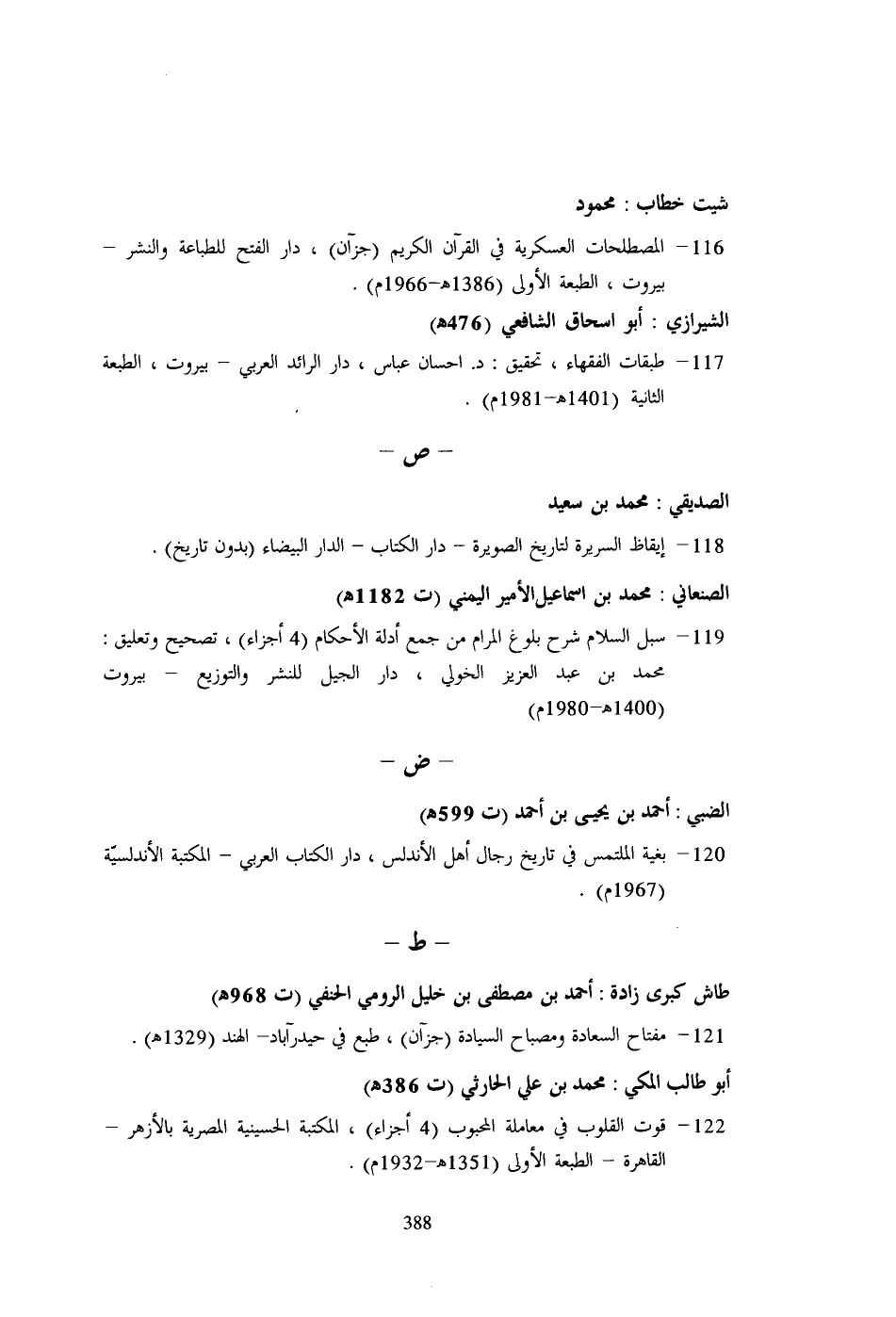 117 - طبقات الفقهاء، تحقيق: د. احسان عباس، دار الرائد العربي- بيروت، الطبعة الثانية (1401هـ - 1981م).