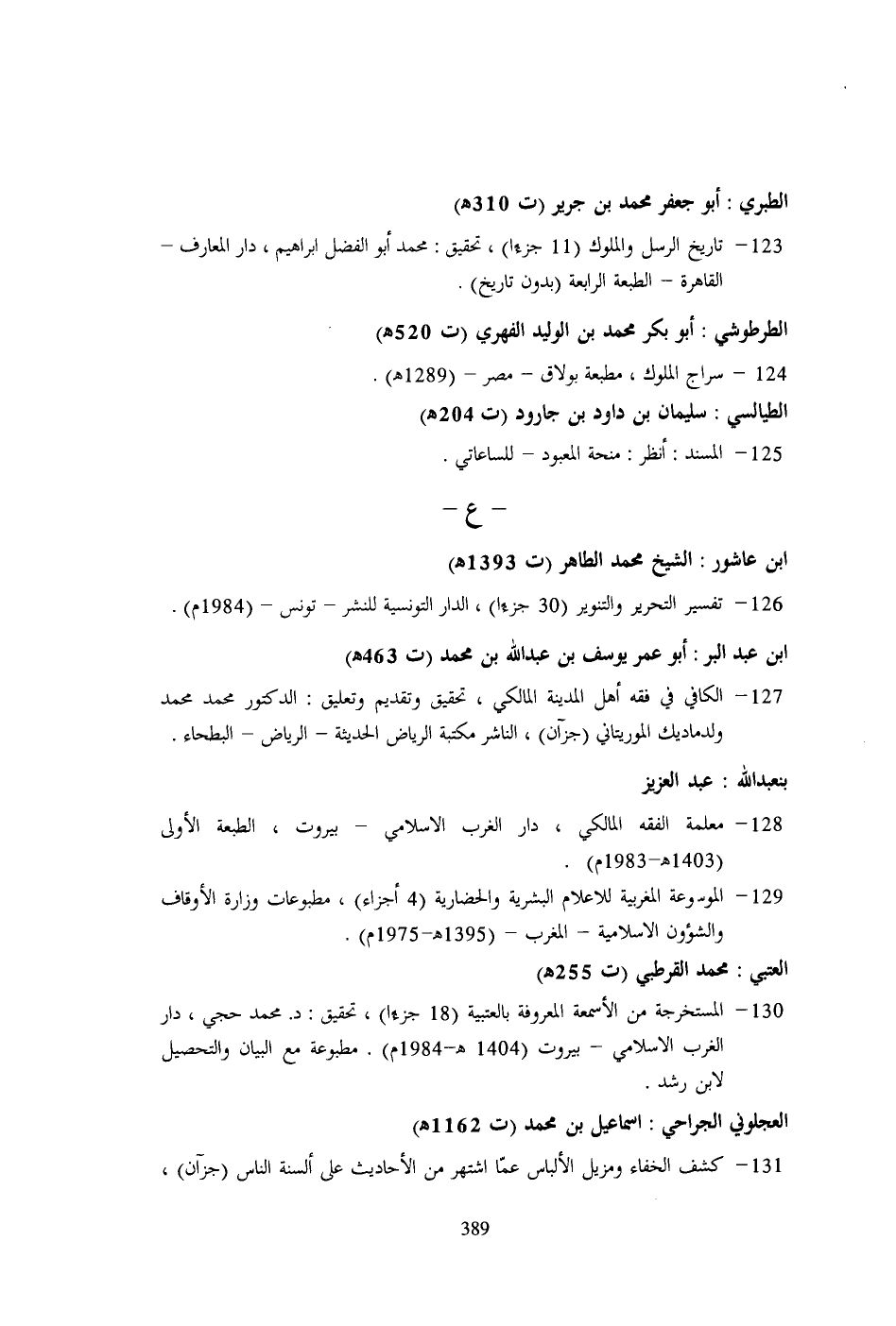 128 - معلمة الفقه المالكي، دار الغرب الاسلامي- بيروت، الطبعة الأولى (1403هـ-1983م).