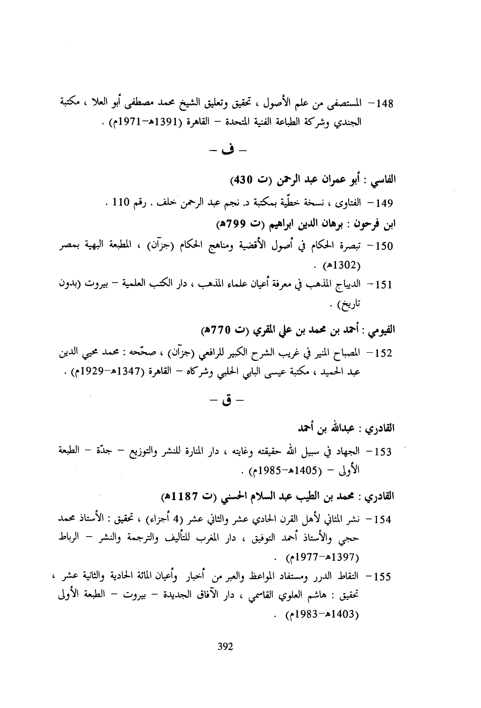 151 - الديباج المذهب في معرفة أعيان علماء المذهب، دار الكتب العلمية- بيروت (بدون تاريخ).