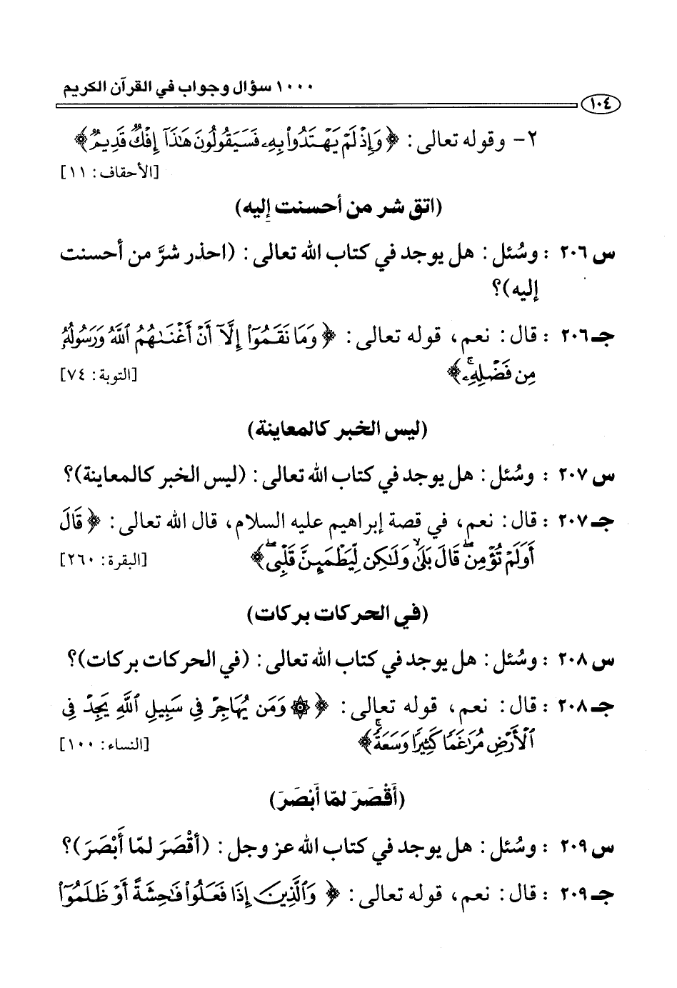 (س 206:) وسئل: هل يوجد في كتاب الله تعالى: (احذر شرّ من أحسنت إليه)؟