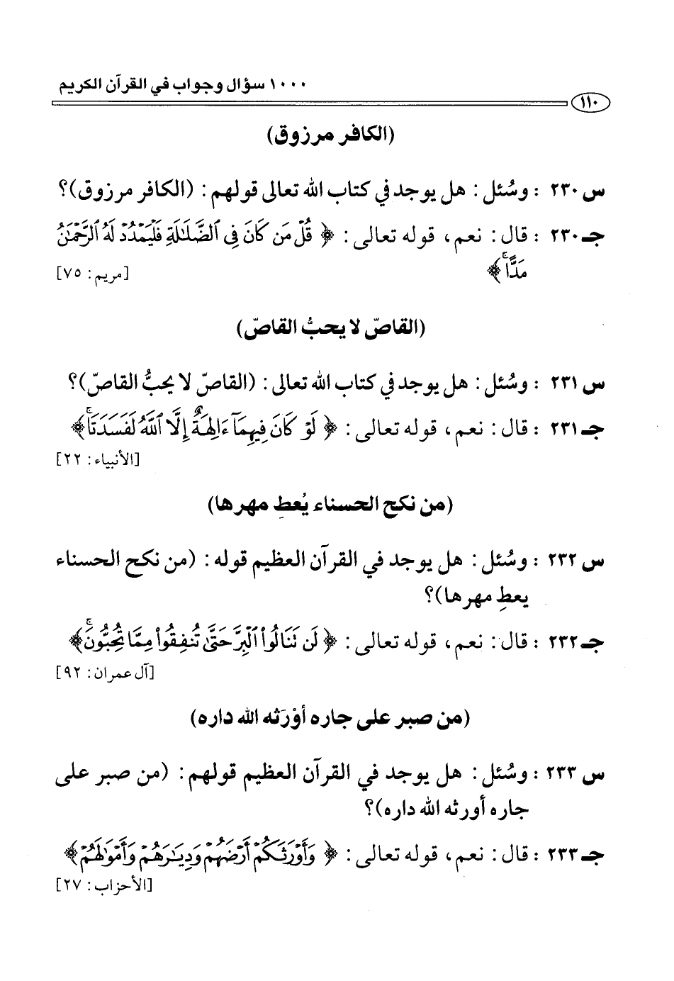 (س 230:) وسئل: هل يوجد في كتاب الله تعالى قولهم: (الكافر مرزوق)؟