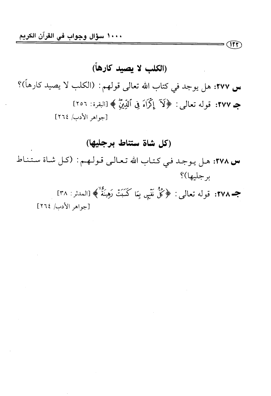 (س 277:) هل يوجد في كتاب الله تعالى قولهم: (الكلب لا يصيد كارها)؟