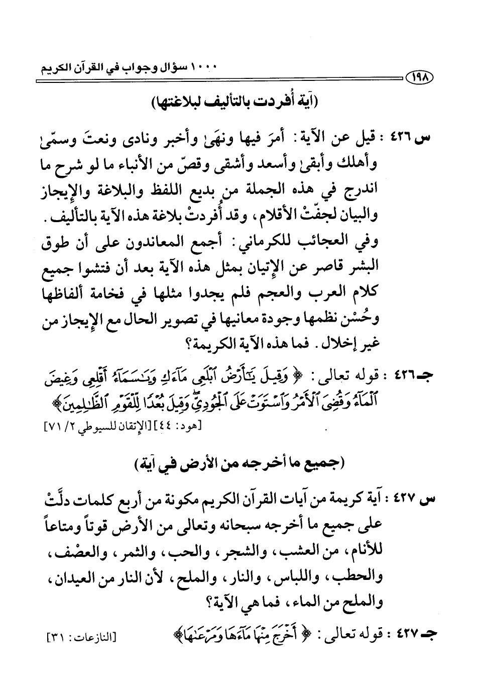 (آية أفردت بالتأليف لبلاغتها)