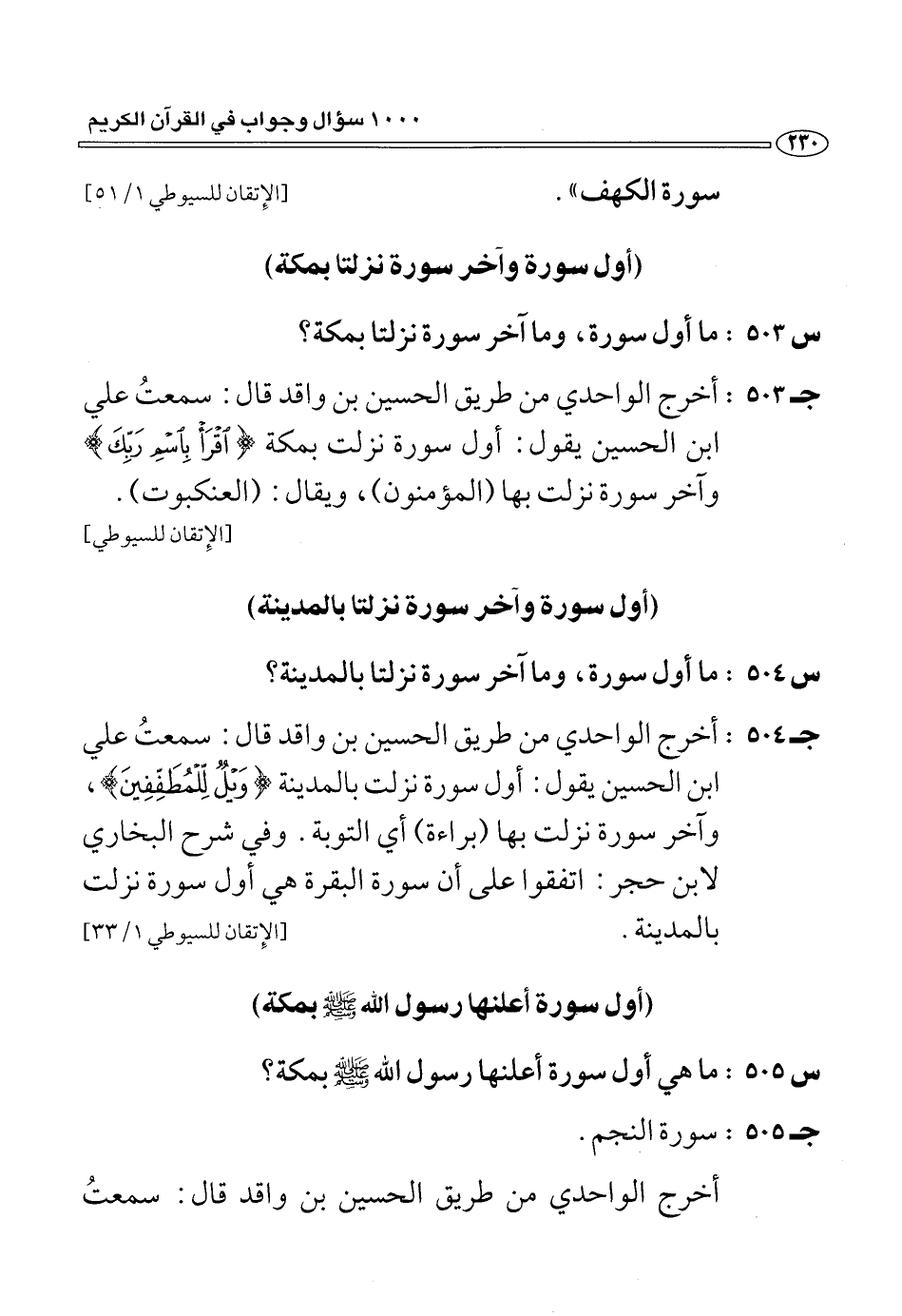 (س 505:) ما هي أول سورة أعلنها رسول الله صلّى الله عليه وسلّم بمكة؟