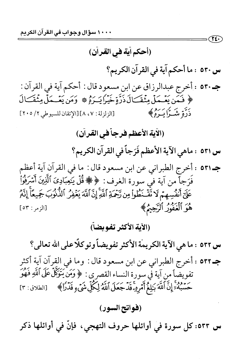 (ج 530:) أخرج عبد الرزاق عن ابن مسعود قال: أحكم آية في القرآن: