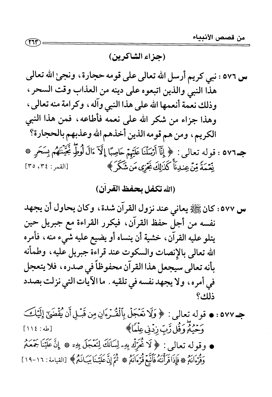 (س 576:) نبي كريم أرسل الله تعالى على قومه حجارة، ونجى الله تعالى هذا النبي والذين اتبعوه على دينه من العذاب وقت السحر، وذلك نعمة أنعمها الله على هذا النبي وآله، وكرامة منه تعالى، وهذا جزاء من شكر الله على نعمه فأطاعه، فمن هذا النبي الكريم، ومن هم قومه الذين أخذهم الله وعذبهم بالحجارة؟