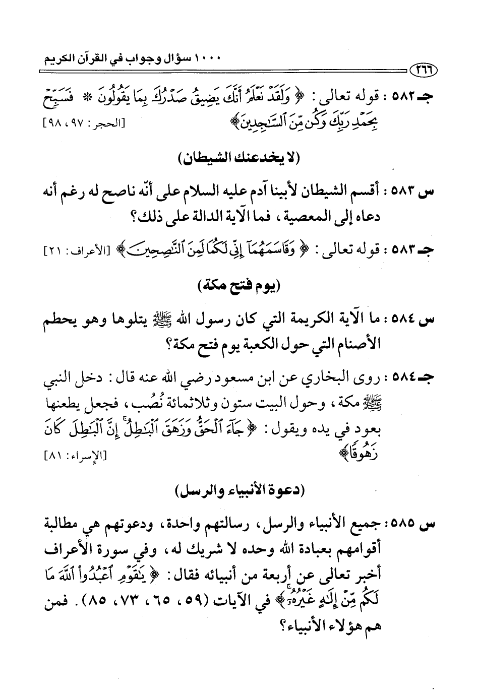(س 584:) ما الآية الكريمة التي كان رسول الله صلّى الله عليه وسلّم يتلوها وهو يحطم الأصنام التي حول الكعبة يوم فتح مكة؟