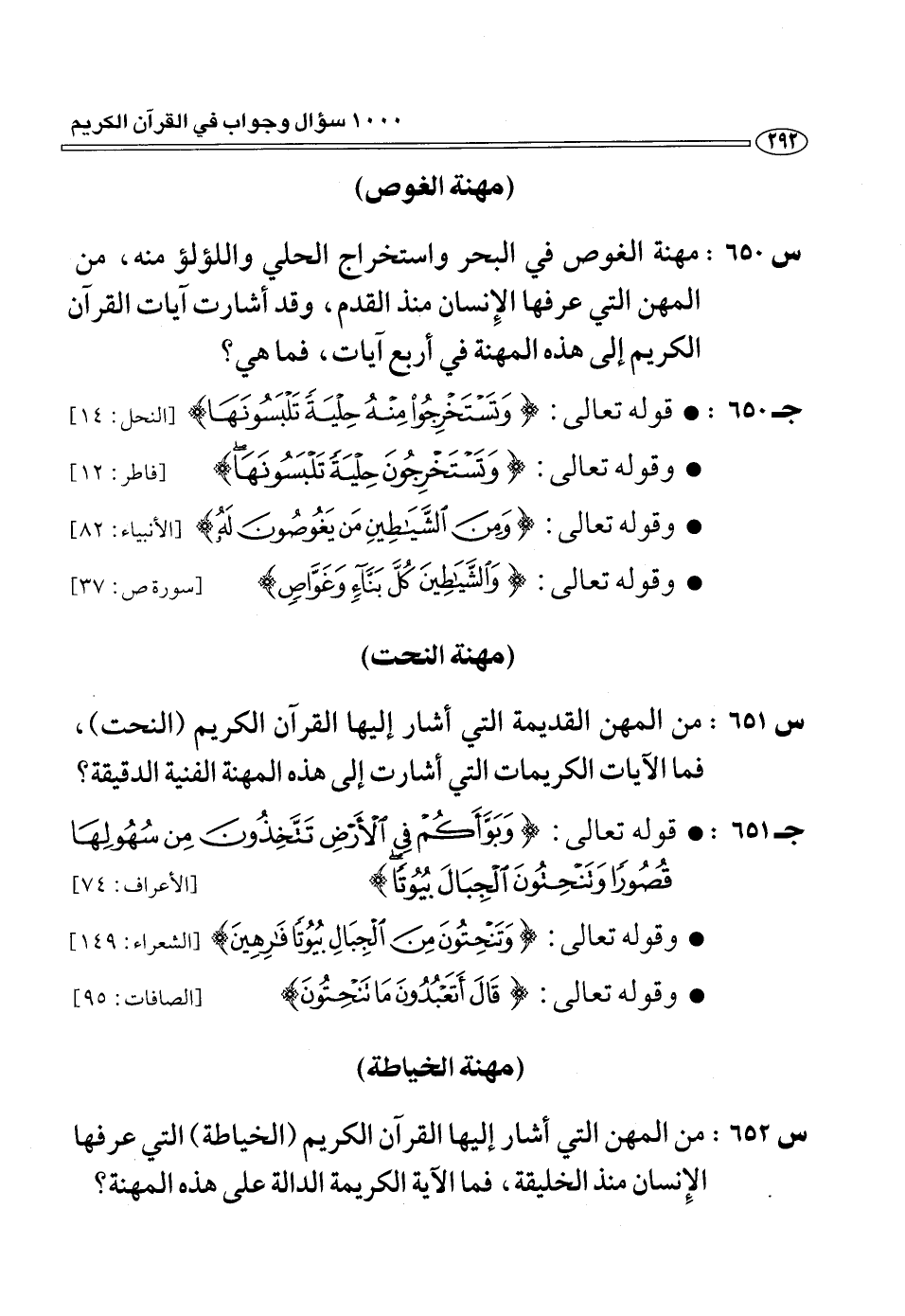 (س 650:) مهنة الغوص في البحر واستخراج الحلي واللؤلؤ منه، من المهن التي عرفها الإنسان منذ القدم، وقد أشارت آيات القرآن الكريم إلى هذه المهنة في أربع آيات، فما هي؟